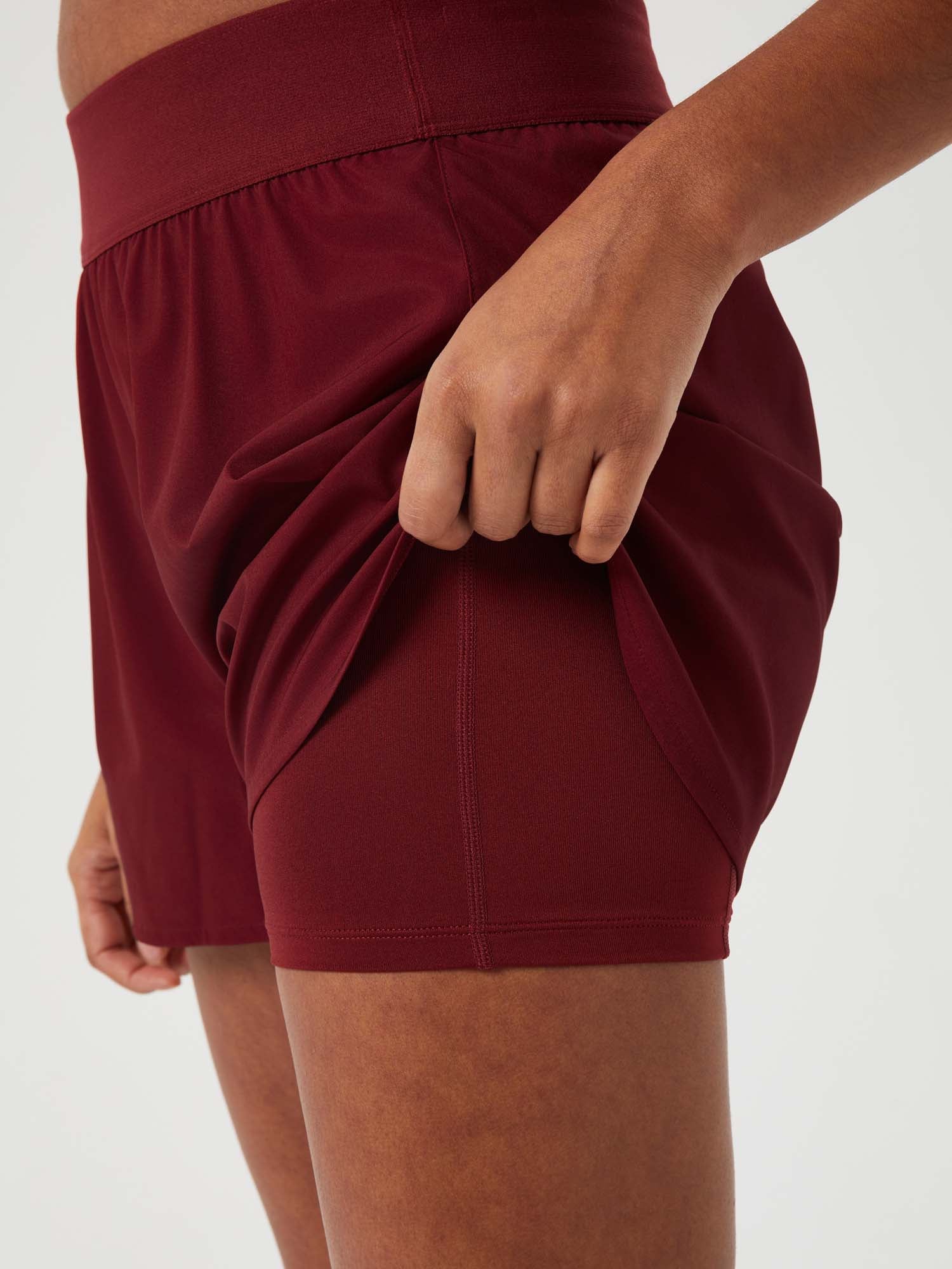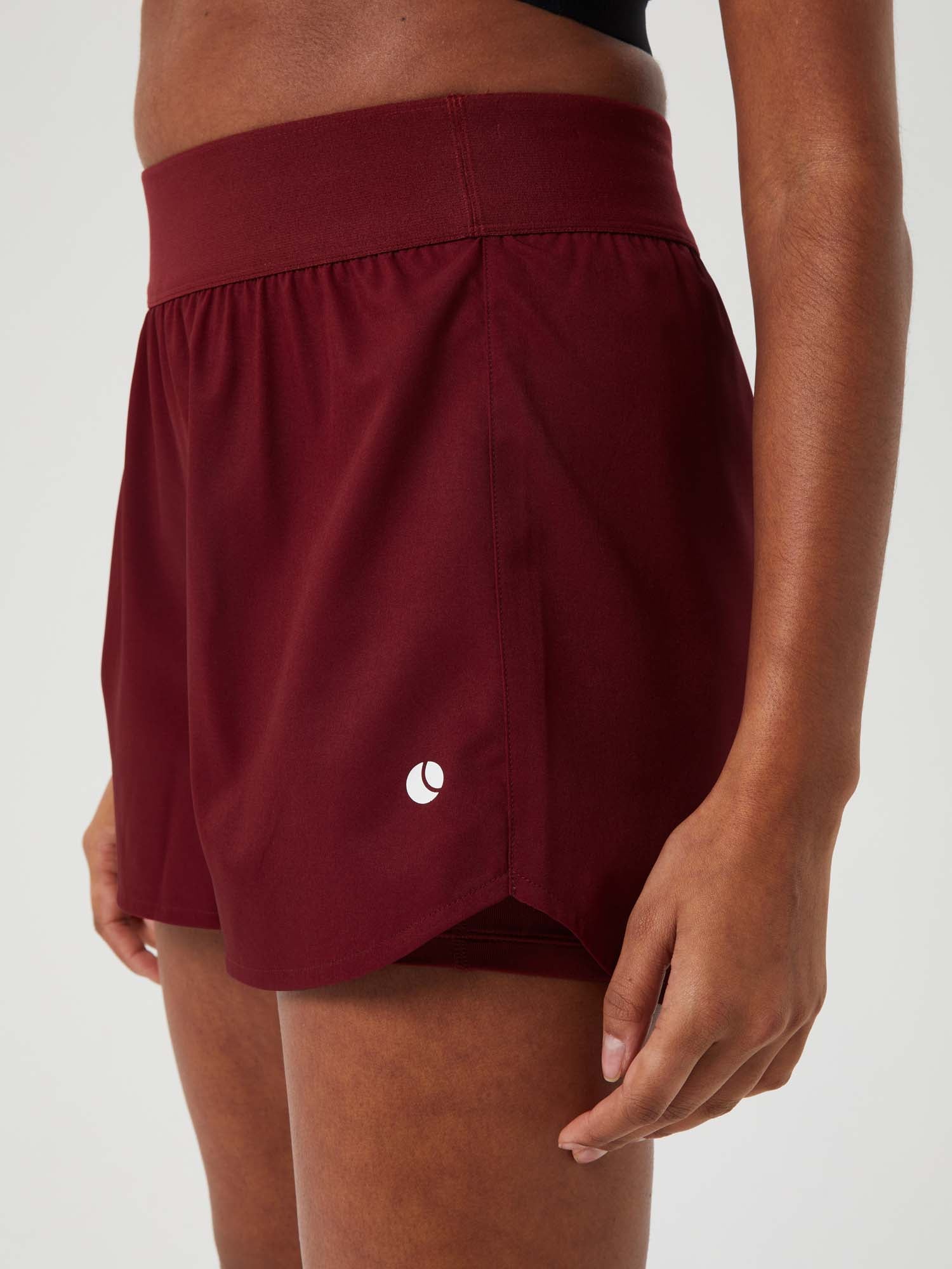 Ga voor performance en stijl met deze 2-in-1 trainingsshort voor dames. Deze stijl combineert een jersey binnenbroekje met een bovenbroekje van geweven gerecycled materiaal.