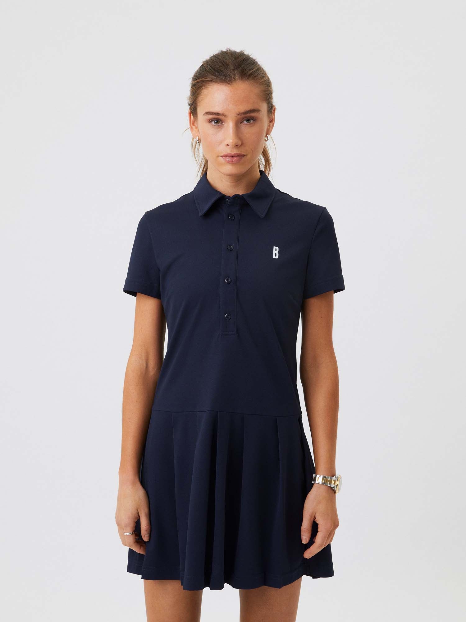 De Björn Borg Ace Polo Dress is een klassieke slim-fit tennisjurk gemaakt van 100% gerecycled polyester in performance piquéstof. Het bovenste gedeelte heeft een geribde kraag in polo-stijl met 3 knopen en figuurnaden op de borst. Het onderste gedeelte heeft een plooirok en een iconisch B-logo op de voorkant. Het model is 173 cm lang en draagt maat S.Waarom duurzamer?