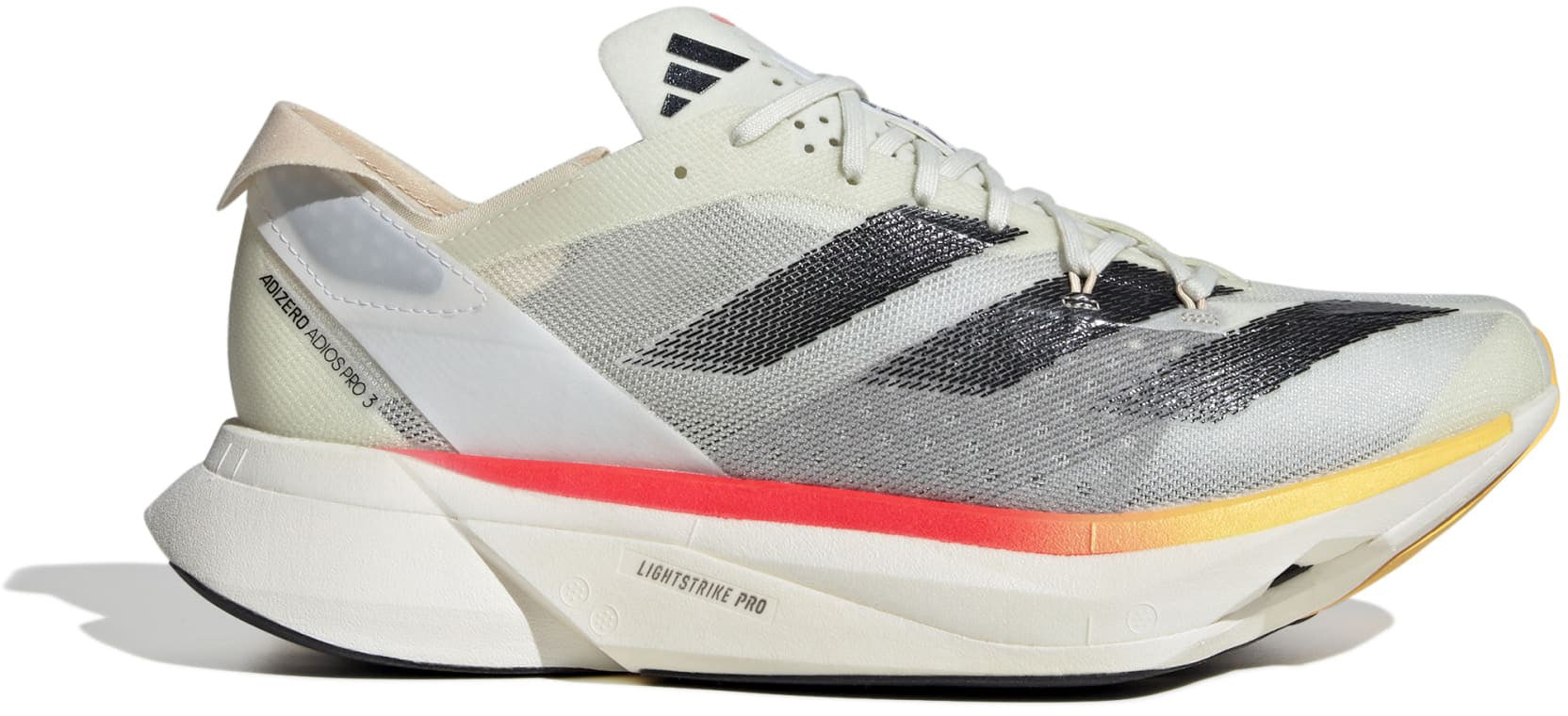 De Adizero Adios Pro 3 is het hoogtepunt van onze Adizero Racing-producten. Hij is met sporters en voor sporters ontwikkeld om ongelooflijke prestaties neer te zetten. Deze adidas hardloopschoenen zijn gemaakt om hardloopefficiëntie te optimaliseren. Onze ENERGYRODS, die zijn doorregen met koolstofvezel, bieden lichtgewicht stijfheid, waardoor je run krachtig en efficiënt aanvoelt. Ultralicht LIGHTSTRIKE PRO dempt je stappen met twee lagen van ons veerkrachtigste foam om je te helpen langdurig energiek te blijven. Het rust allemaal op een dunne loopzool van textielrubber voor uitzonderlijke grip in natte en droge omstandigheden