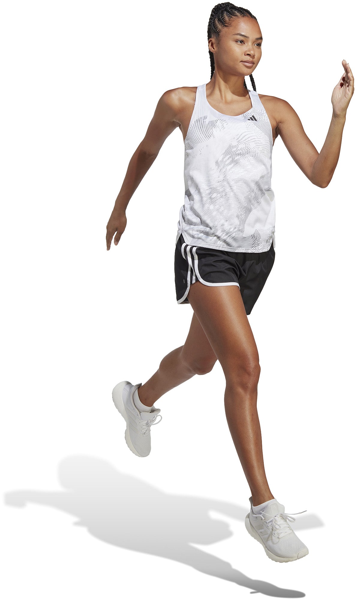 Loop snel. Voel je onoverwinnelijk. Deze adidas hardlooptanktop biedt alle comfort en prestaties die je nodig hebt op de dag van de wedstrijd, zodat jij je blik kunt richten op een nieuw PR en op die podiumplek. Het ultralichte model voelt moeiteloos aan en de verlijmde naden verminderen schuren. Je kunt de intensiteit rustig nog wat verder opvoeren, want AEROREADY houdt vocht onder de duim.