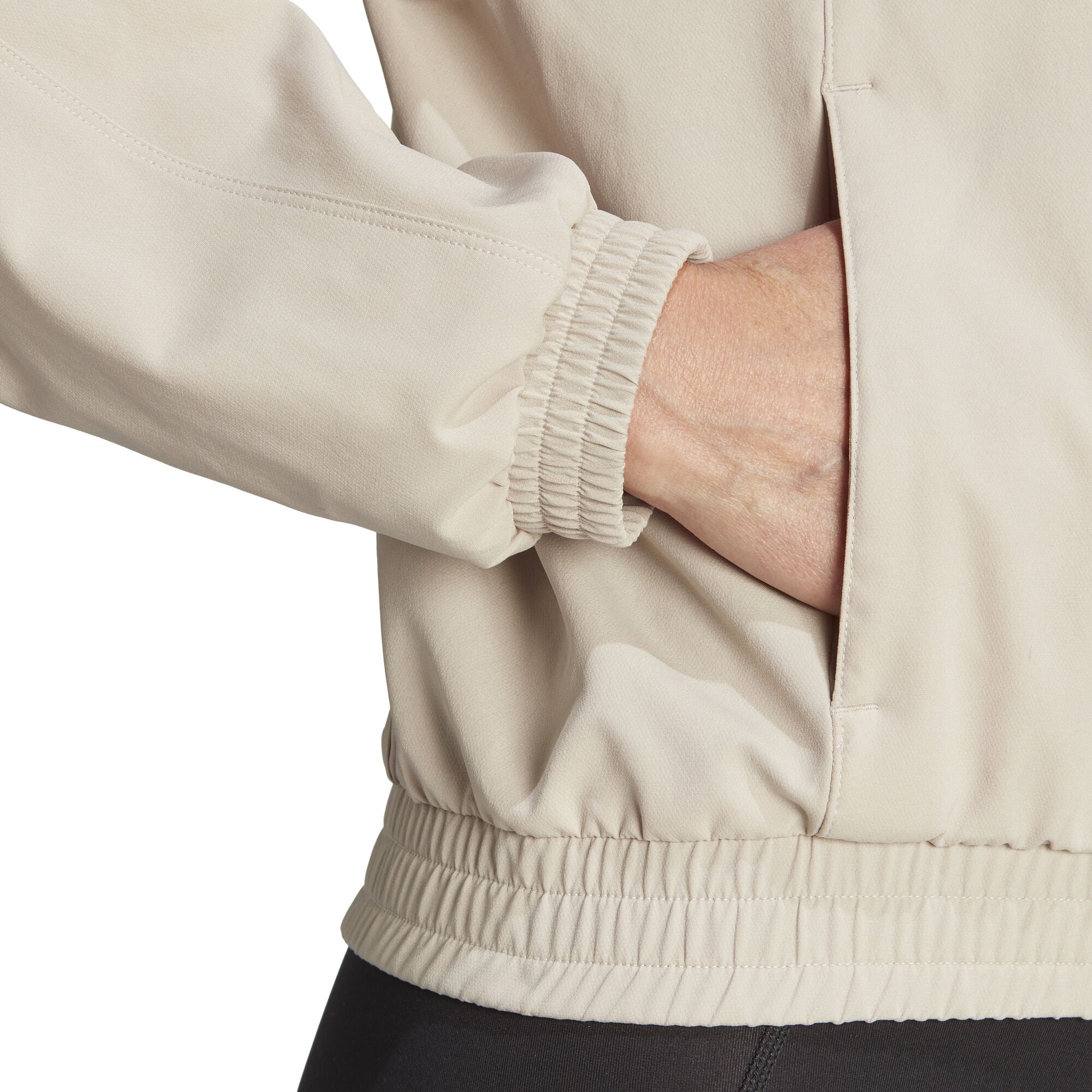 Of je nu binnen of buiten traint, dit adidas trainingsjack houdt je klaar voor je warming-up, cooling-down en alles daartussenin. Het is gemaakt van zacht maar robuust materiaal, dat meerekt wanneer nodig en ademend blijft tijdens je hele sessie. In de voorzakken met drukknopen berg je je onmisbare spullen binnen handbereik op, en het design met korte rits biedt ventilatie wanneer je maar wilt. Niet dat je dat echt nodig hebt, want AEROREADY reguleert vocht voor comfort en een koel, droog gevoel.