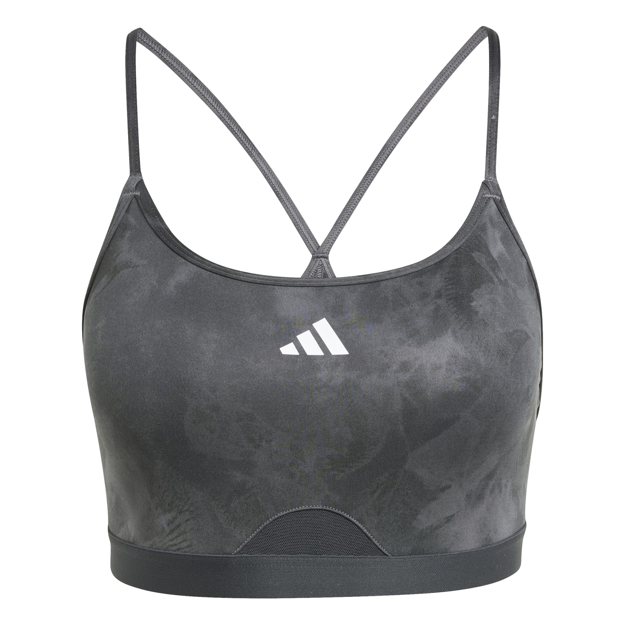 Een op tie-dye geïnspireerde bloemenprint geeft deze adidas workoutbeha met lichte ondersteuning frisse stijl. Het model met dunne bandjes is gemaakt met vochtafvoerende AEROREADY-technologie om je droog te houden op de mat of aan de barre. De uitneembare cups zijn voorzien van stroeve stippen om ze op hun plek te houden terwijl je beweegt.