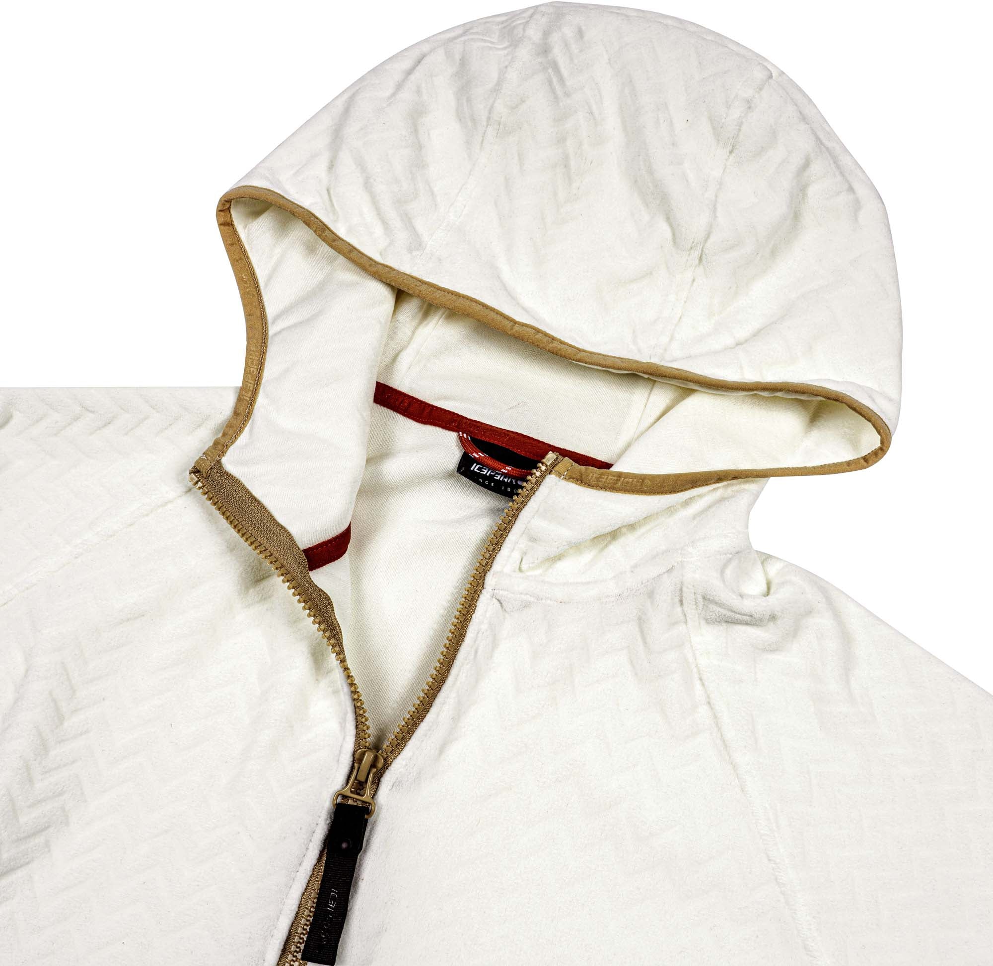 Icepeak-tussenlaag voor dames. Normale pasvorm. Raglanmouwen. Vaste capuchon. Elastiek rond de gezichtsopening. Elastische manchetten. Twee voorzakken met ritssluiting. Ritssluiting aan de voorkant. Elastische zoom. Logo-label. Het 4-way stretchmateriaal rekt naar alle richtingen en geeft maximale bewegingsvrijheid.