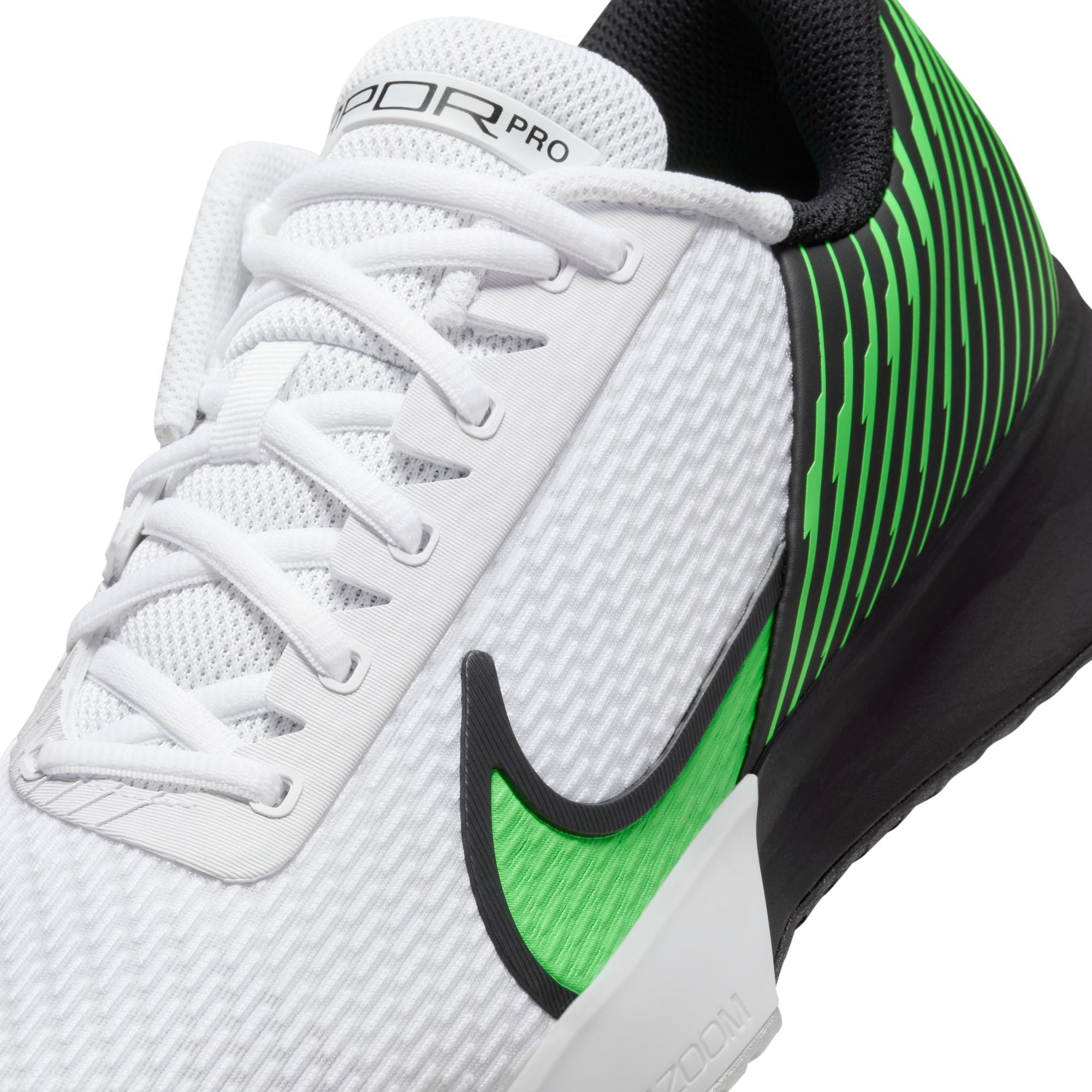 Ga voor de constante rally tijdens de marathon van vijf sets die in jouw voordeel moet eindigen: kies voor de Vapor Pro 2. We hebben alle details teruggehaald waar je van genoot in de originele Pro, het lage design, de veerkrachtige Zoom die je helpt van baseline naar baseline te knallen met dat bekende Vapor comfort dat je fris houdt op zware ondergronden.