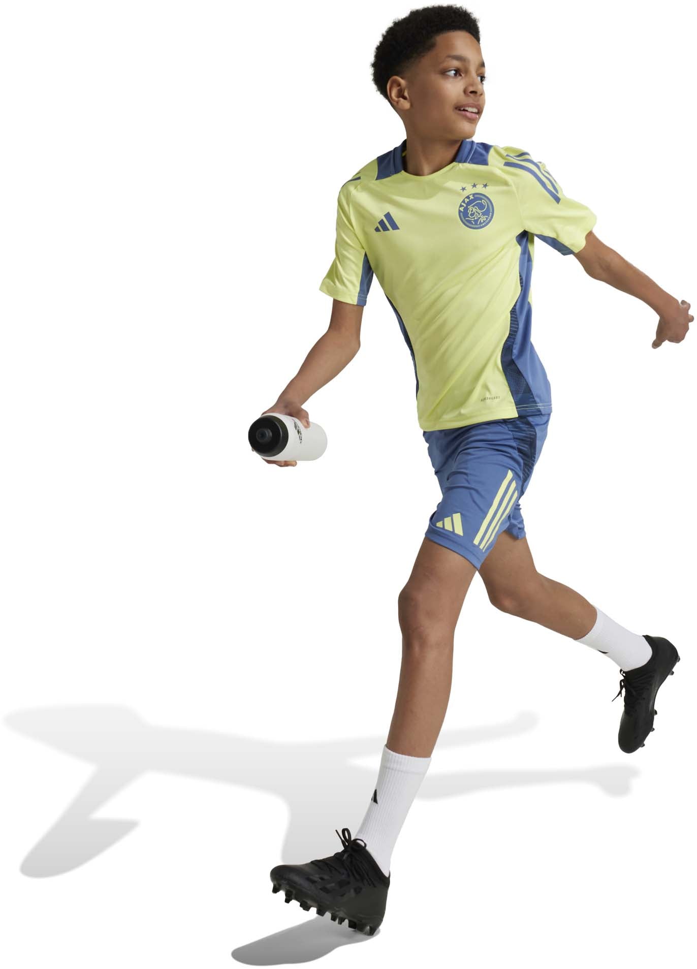 Heers over het trainingsveld in de kleding die de spelers van Ajax dragen op het veld van De Toekomst. Dit adidas voetbalshirt voor junioren is met AEROREADY gemaakt voor jonge voetballers die altijd alles geven, om je ook tijdens de meest slopende workouts droog te houden. Het op het zachte interlock gestreken clubembleem laat zien dat je ernaar streeft om de prachtige sport op de juiste manier te spelen.