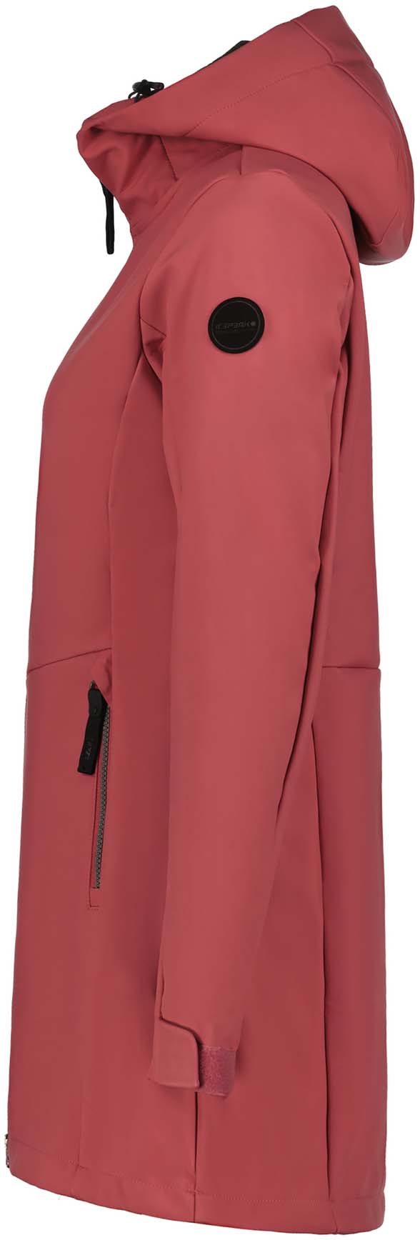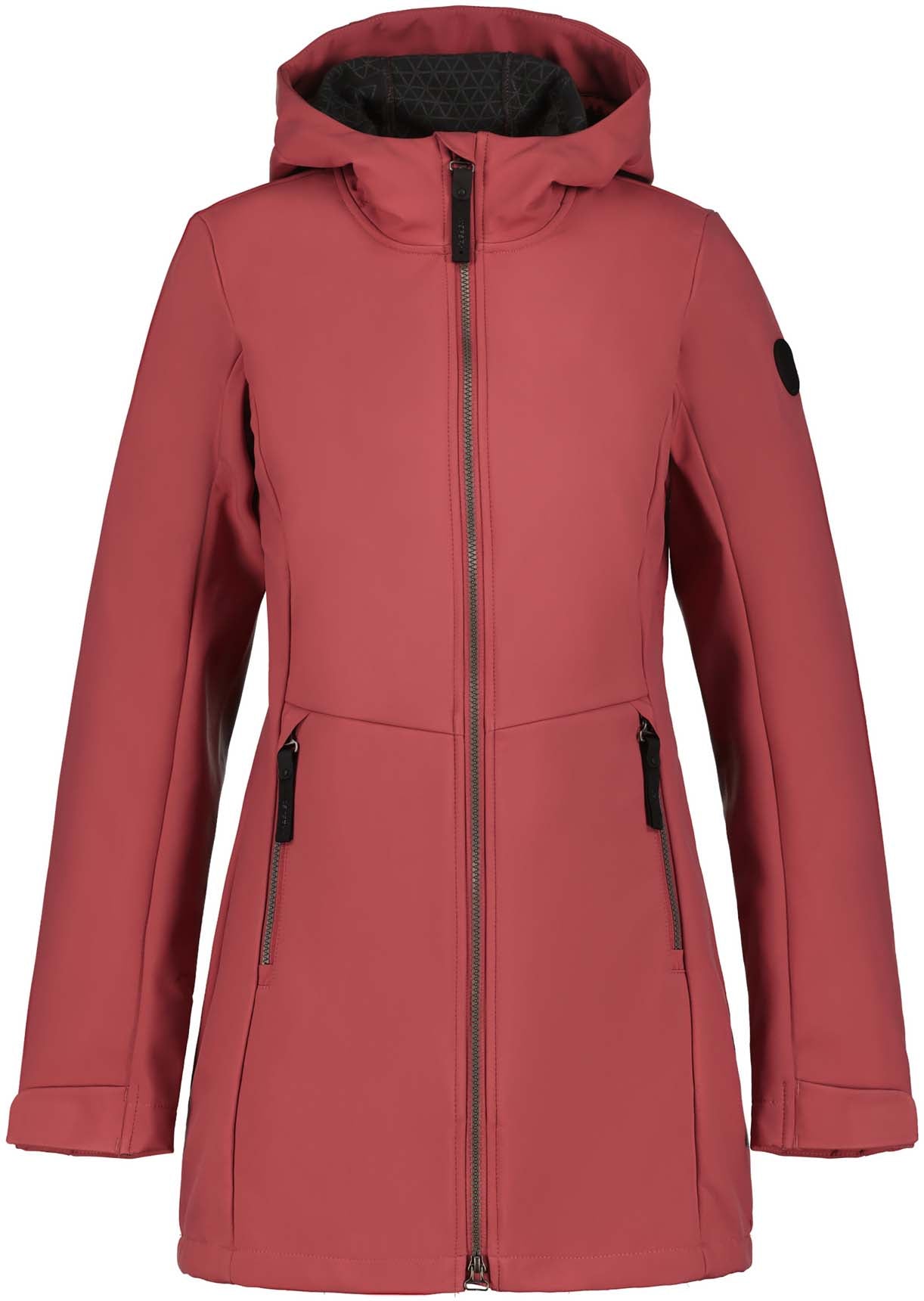 Icepeak softshelljack voor dames. Verstelbare vaste capuchon. Verstelbare manchetten. Twee voorzakken met ritssluiting. Tweewegritssluiting aan de voorkant. Verstelbare zoom. Waterkolom 10.000 mm. Ademend vermogen 5.000 g\m2\24u. Softshell is een functioneel materiaal voor een breed scala aan buitenactiviteiten. Het product biedt bescherming tegen weersinvloeden en is tegelijkertijd comfortabel flexibel. Er is speciale aandacht besteed aan functionaliteit en comfort tijdens het ontwerpproces van deze A.W.S. ACTIVE product, waardoor het geschikt is voor zowel energieke als ontspannen activiteiten. Het oppervlak van de stof is behandeld met een waterafstotende afwerking. Het product is waterafstotend gemaakt zonder PFC's.