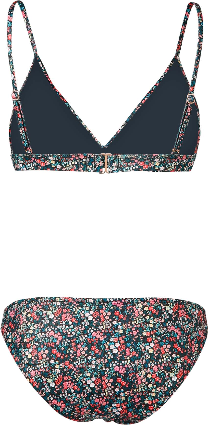 Bikini van gerecycled materiaal met een vrolijke bloemetjes print. Door de verstelbare bandjes kan je de haltertop op verschillende manieren dragen.