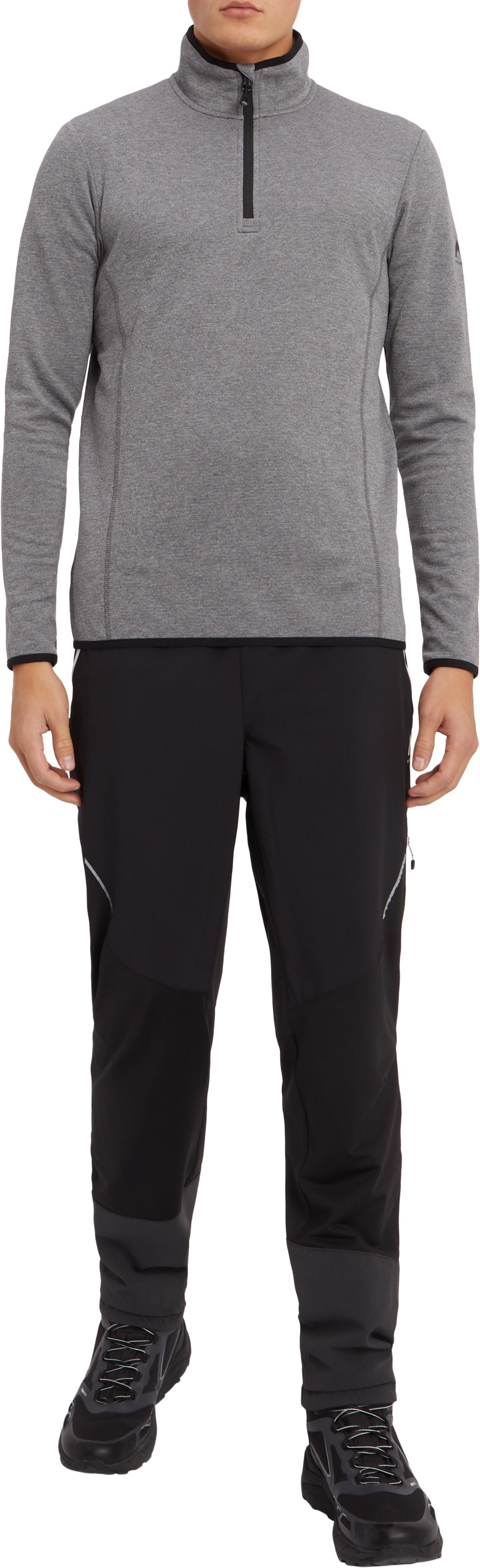 De Andreas-tussenlaag met lange mouwen heeft een opstaande kraag met kinbescherming voor comfort en integreert s.Cafe®-technologie. Deze pullover met halve rits heeft ook flatlocknaden en geborstelde binnenstof, evenals een elastische zoom en mouwzoom om de warmte binnen te houden.
