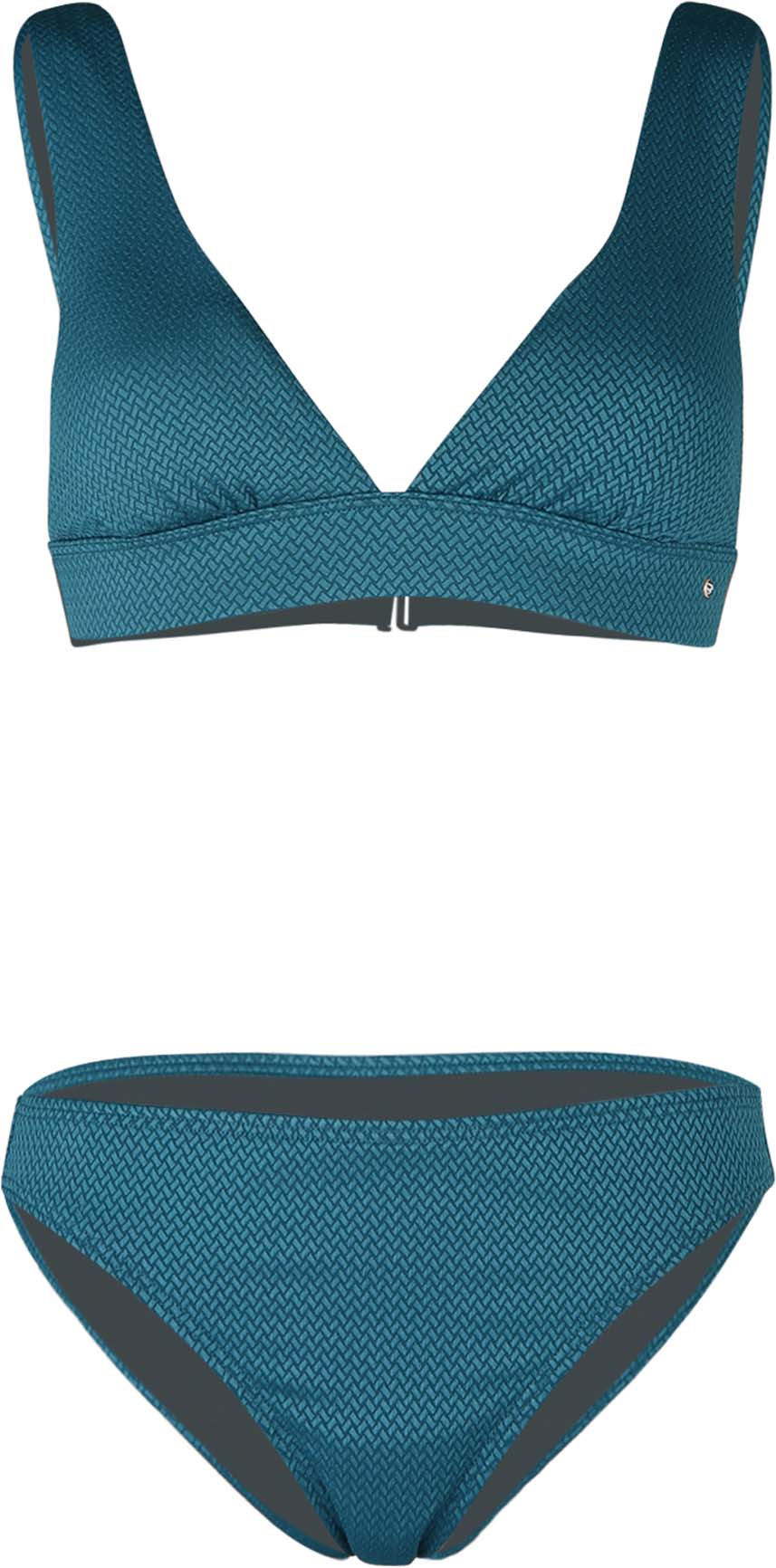 Bikini met plunge haltertop met bredere schouderbandjes. De bikini is gemaakt van mooi zigzag structuurstof.
