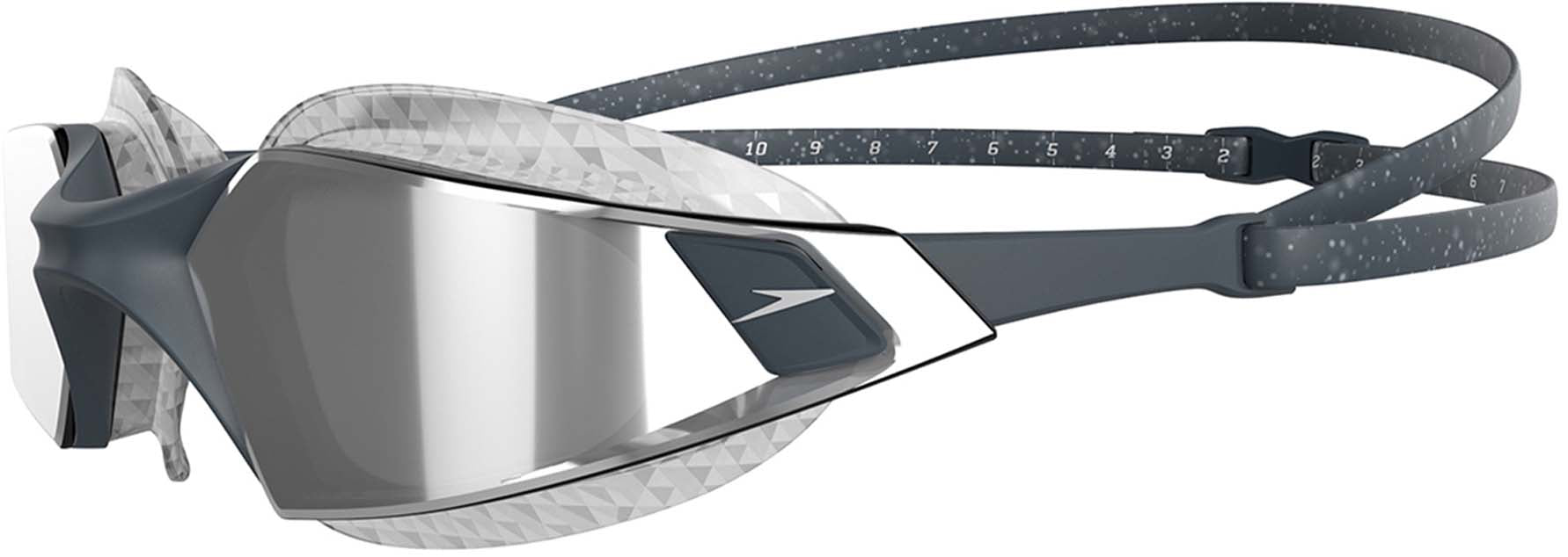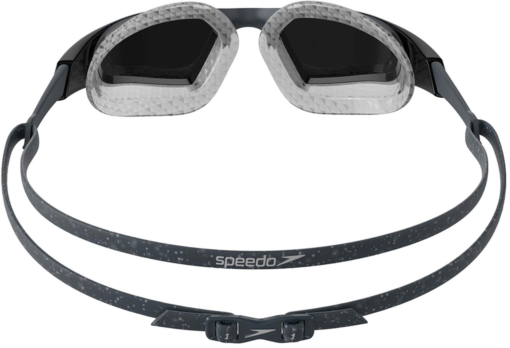 De gloednieuwe Aquapulse Pro Mirror is ideaal voor fitnesszwemmers en triatleten. . Voortbouwend op het succes van de Aquapulse Max 2 Mirror, zet deze bril nieuwe normen in brillenontwerp met een frameloos profiel en een nieuwe zijarm die is ontworpen om meer stabiliteit en minder spanning op het hoofd te bieden. Met Speedo's meest geavanceerde goggle-technologie ooit - IQfit™ - voor een lekvrije, stevige pasvorm en minder vlekken rond de ogen. Geniet van uitstekend perifeer zicht en helderheid dankzij de stijlvolle omwikkelbare spiegellenzen met anti-condens en 100% UV-bescherming, waardoor u zich elke keer dat u zwemt zelfverzekerd voelt in het water.IQfit™ 3D-brilafdichting voor een lekvrije, veilige pasvorm en minder vlekken rond de ogen.