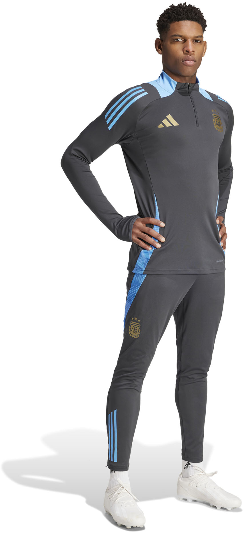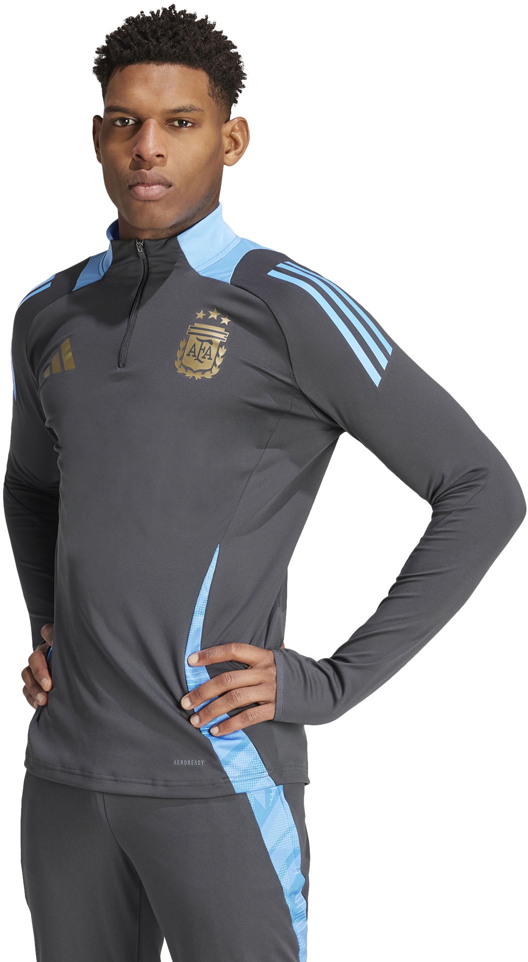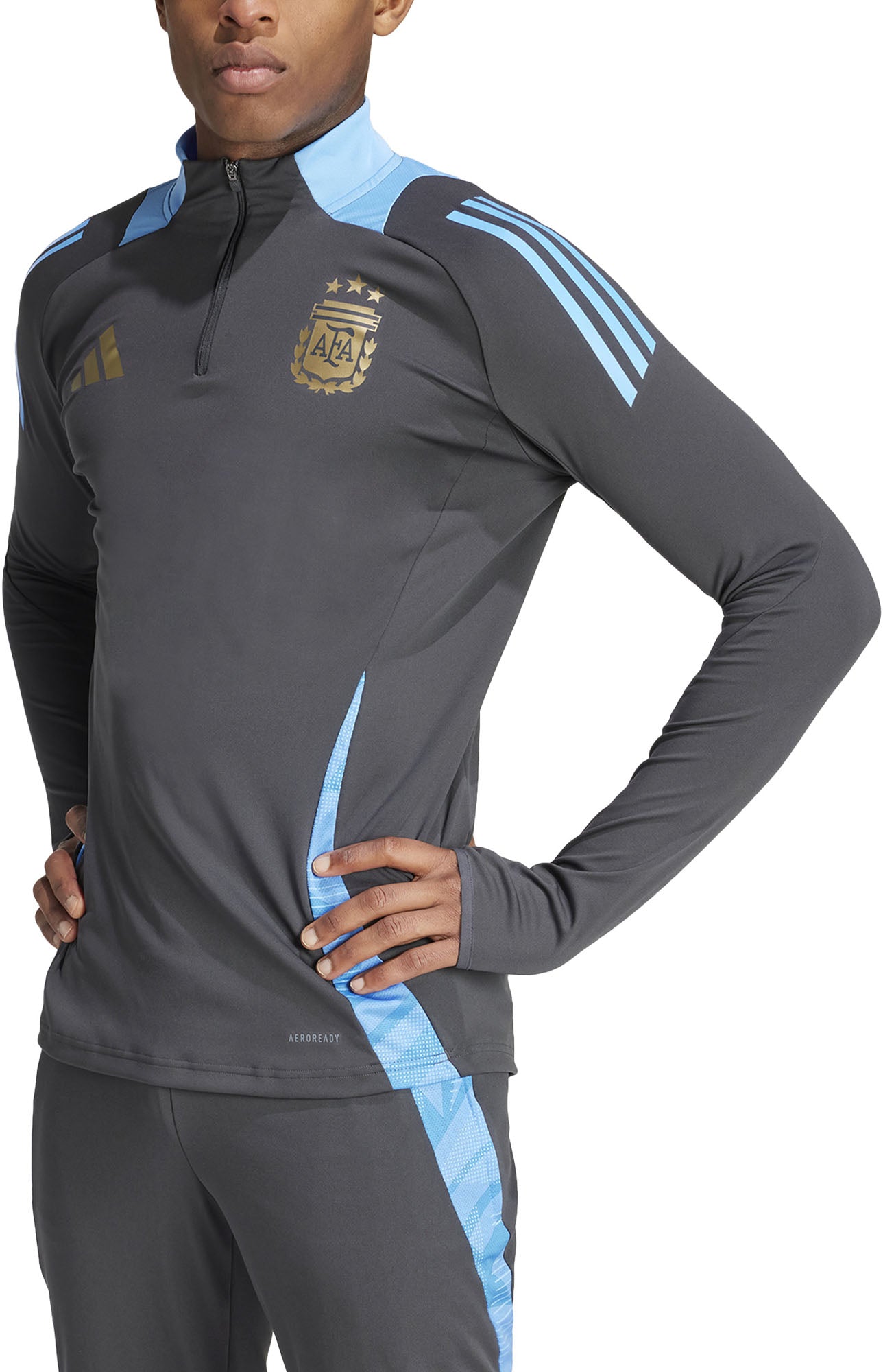 Ga tot het uiterste in adidas training gear. Deze nauwsluitende Argentinië trainingstop beweegt bij elke sprint en ieder schot met je mee, en AEROREADY reguleert vocht om je gefocust te houden. Op de borst onderstreept een teambadge jouw passie voor voetbal. Wat je doelen ook zijn, dit shirt helpt je als een kampioen te trainen.