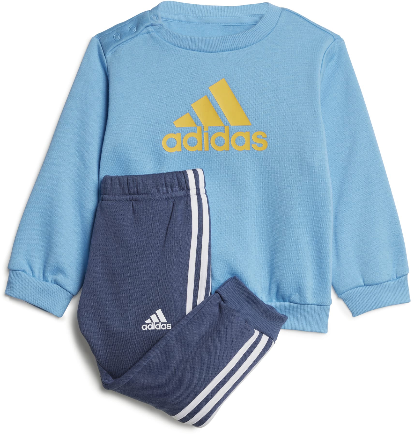 Je kleintje kijkt graag toe hoe jij je workout doet. In dit joggingpak voor peuters heeft jouw sportteam er meteen een nieuw lid bij. Sportieve 3-Stripes langs de pijpen en een grote adidas Badge of Sport op het sweatshirt maken een grote ster van je kleine zonnetje in huis. Welke routine staat er vandaag op het programma? De hele dag spelen, natuurlijk.
