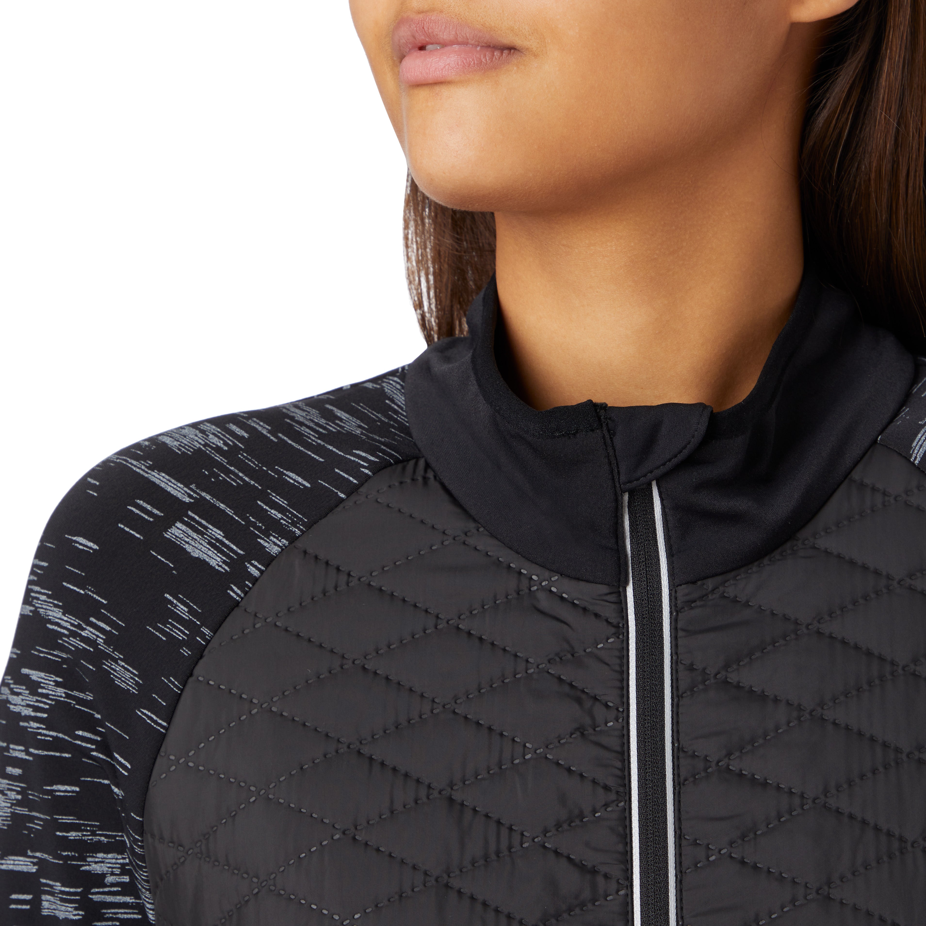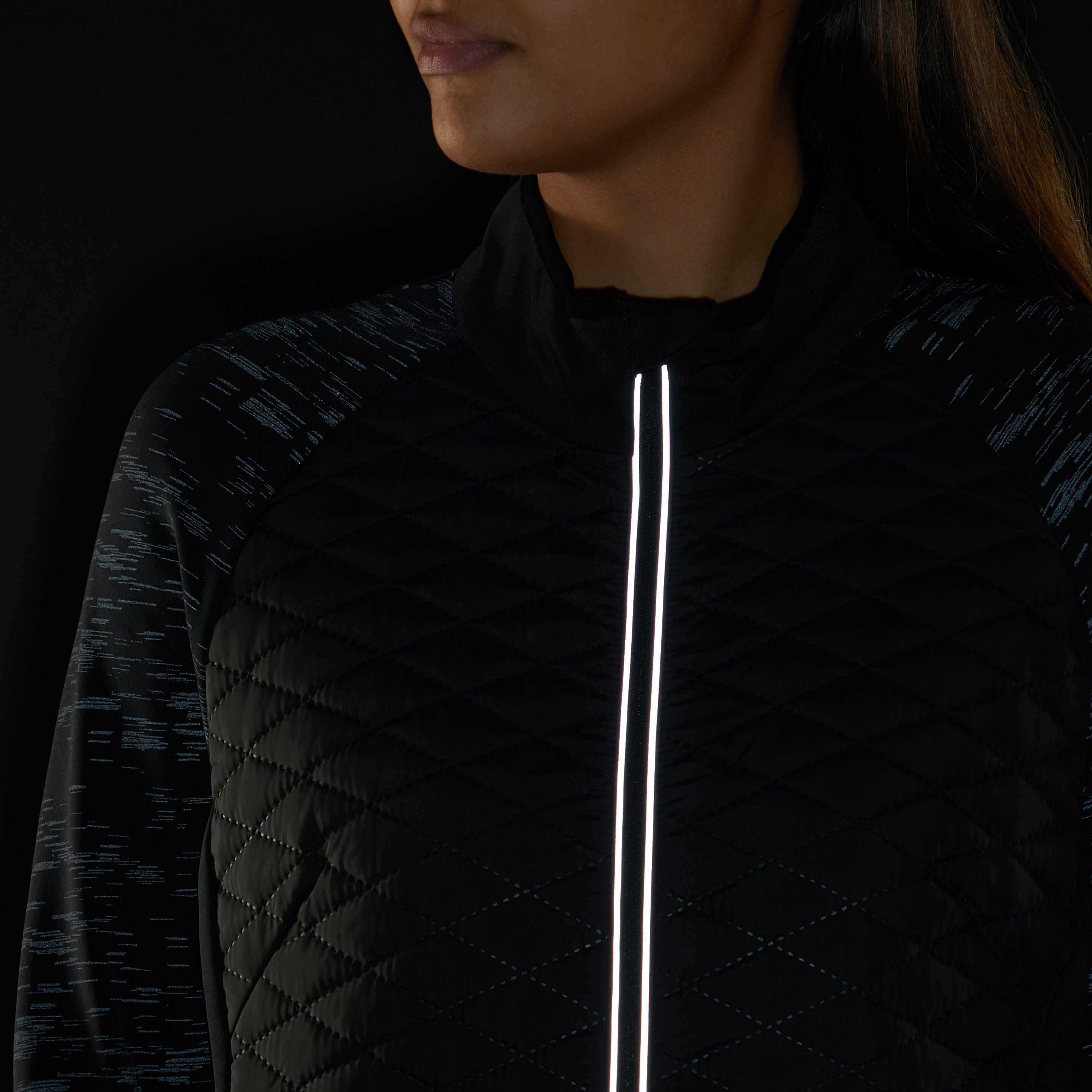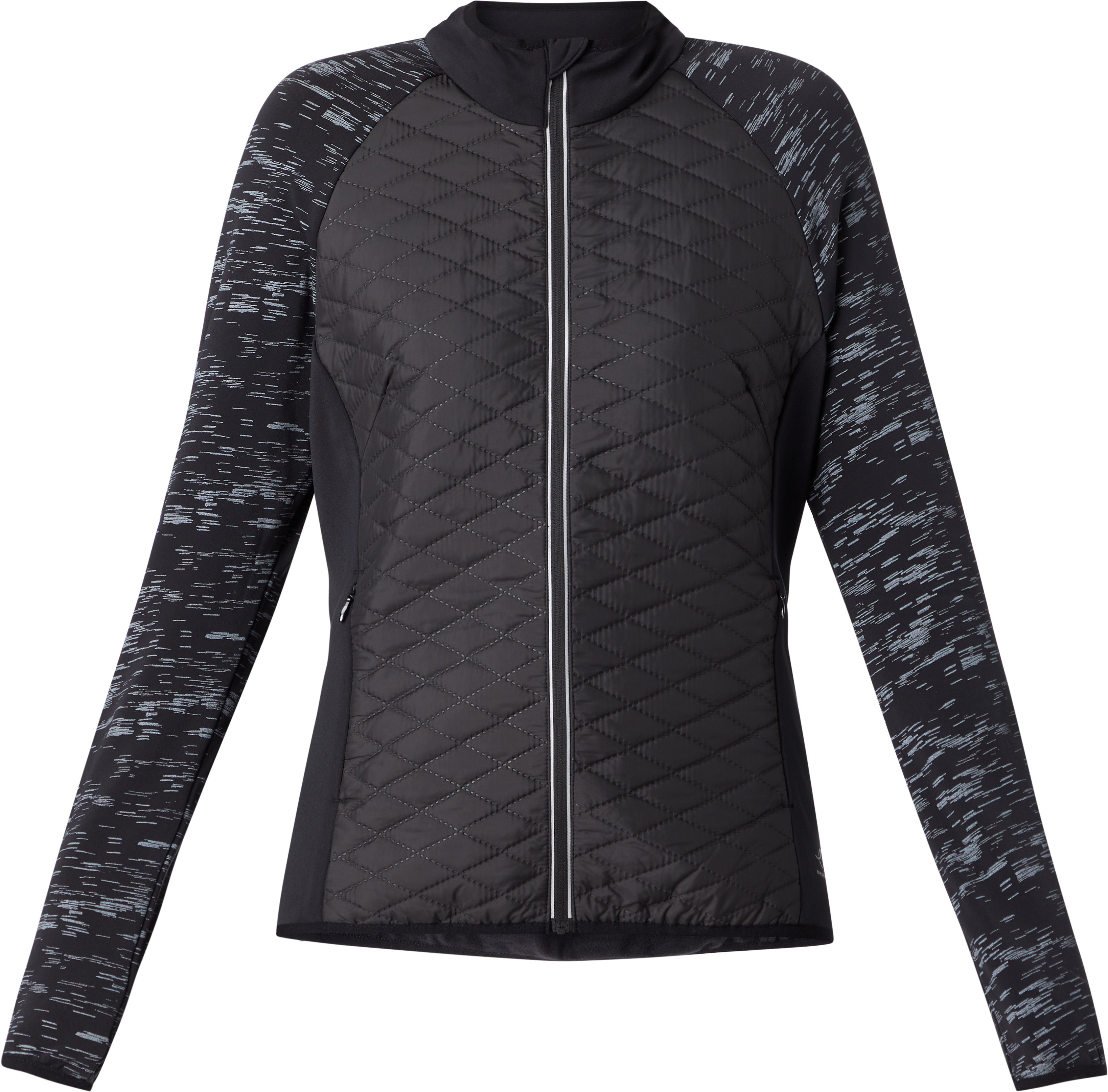 Het Baya IV regular-fit hardloopjack met lange mouwen voor dames heeft een reflecterend all-over printontwerp voor een stijlvolle look tijdens het hardlopen. Deze jas met volledige ritssluiting heeft een zachte en comfortabele geborstelde binnenkant, twee handige zijzakken aan de buitenkant om jouw kleine spullen veilig en gezond op te bergen en een hoge kraag en kinbescherming voor extra warmte en bescherming. Het 100% geweven gerecyclede polyester materiaal is slijtvast en duurzaam. Daarnaast heeft het 360 graden reflectie voor zichtbaarheid waar en wanneer je ook loopt.