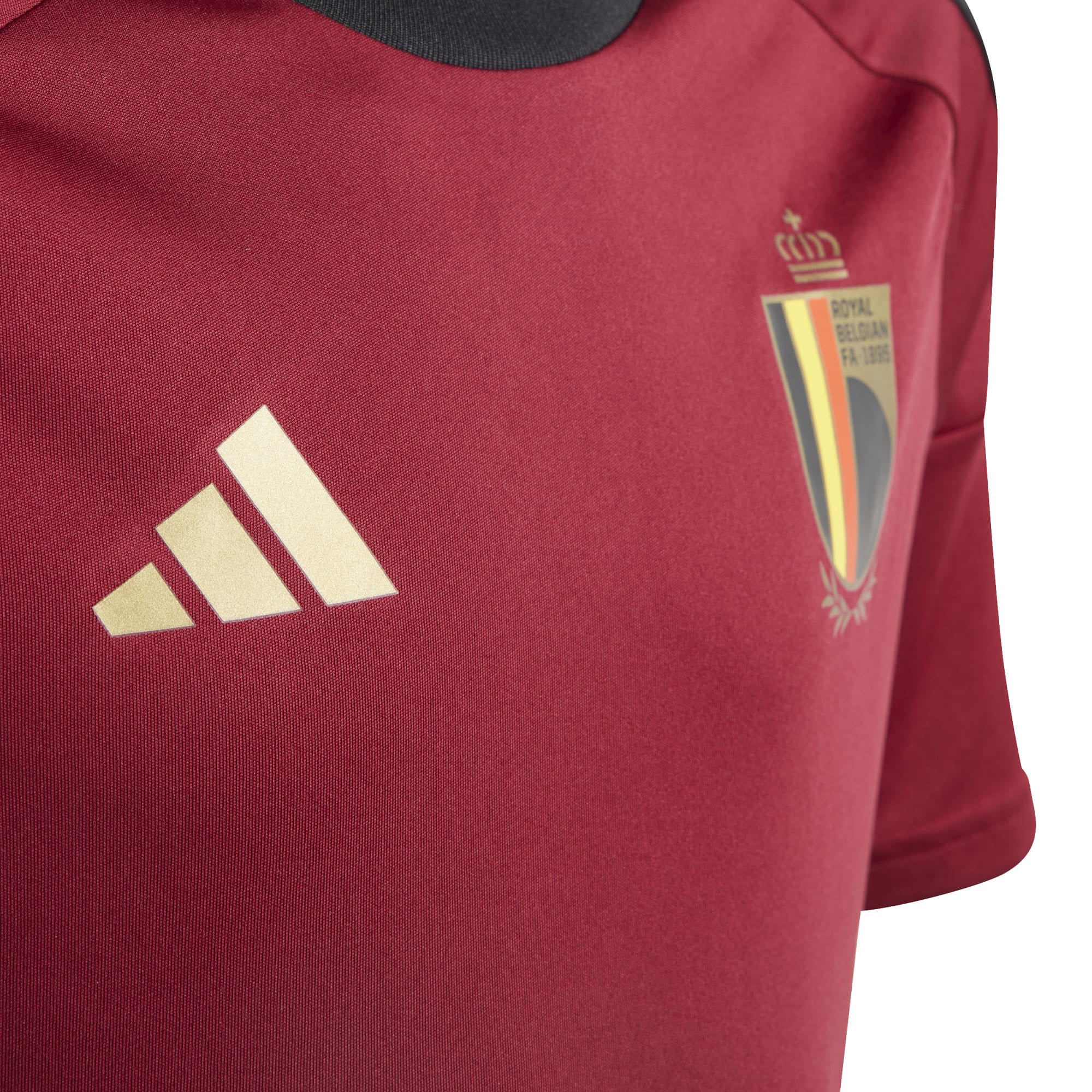 Ontworpen om op te vallen. Dit junior adidas België fanshirt, uitgevoerd in de klassieke thuiskleuren, is een versimpelde versie van het wedstrijdshirt. Het zachte interlock materiaal maakt 't ideaal om je support te tonen tijdens de grootste voetbaluitdagingen waar het elftal mee te maken krijgt. Een opgestreken badge op de borst maakt het in stijl compleet.