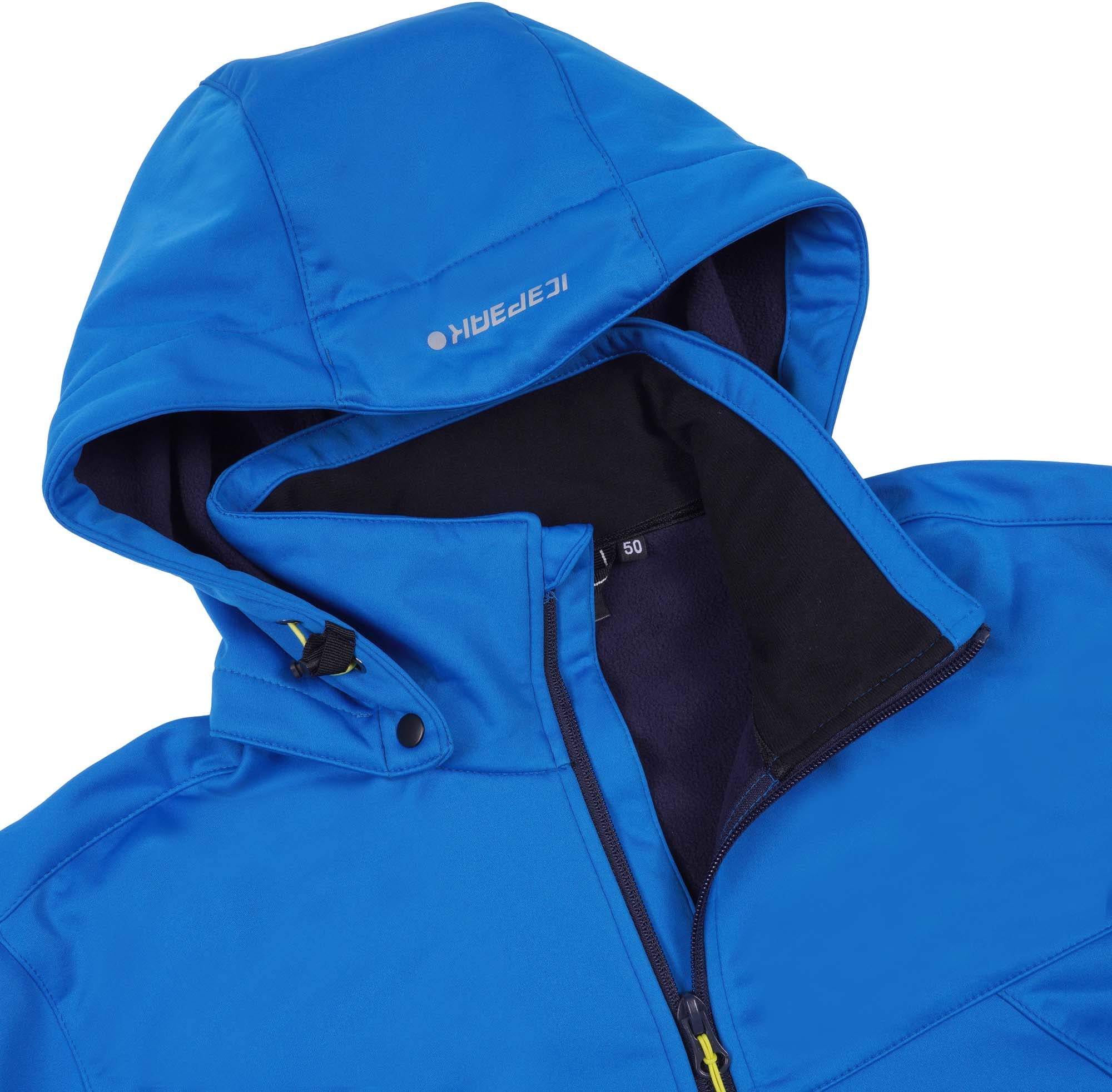 Icepeak softshelljack voor heren. Normale pasvorm. Comfortabele binnenkraag. Afneembare en verstelbare capuchon. Verstelbare manchetten met klittenband. Twee voorzakken met ritssluiting. Windsluiting. Kinbescherming op de ritssluiting aan de voorkant. Verstelbare zoom. Waterkolom 8 000 mm. Ademend vermogen 3.000 g\m2\24u. Softshell is een functioneel materiaal voor een breed scala aan buitenactiviteiten. Het product biedt bescherming tegen weersinvloeden en is tegelijkertijd comfortabel flexibel. Er is speciale aandacht besteed aan functionaliteit en comfort tijdens het ontwerpproces van deze A.W.S. ACTIVE product, waardoor het geschikt is voor zowel energieke als ontspannen activiteiten. Het product is waterafstotend gemaakt zonder PFC's. Het oppervlak van de stof is behandeld met een waterafstotende afwerking. Ongevoerd.