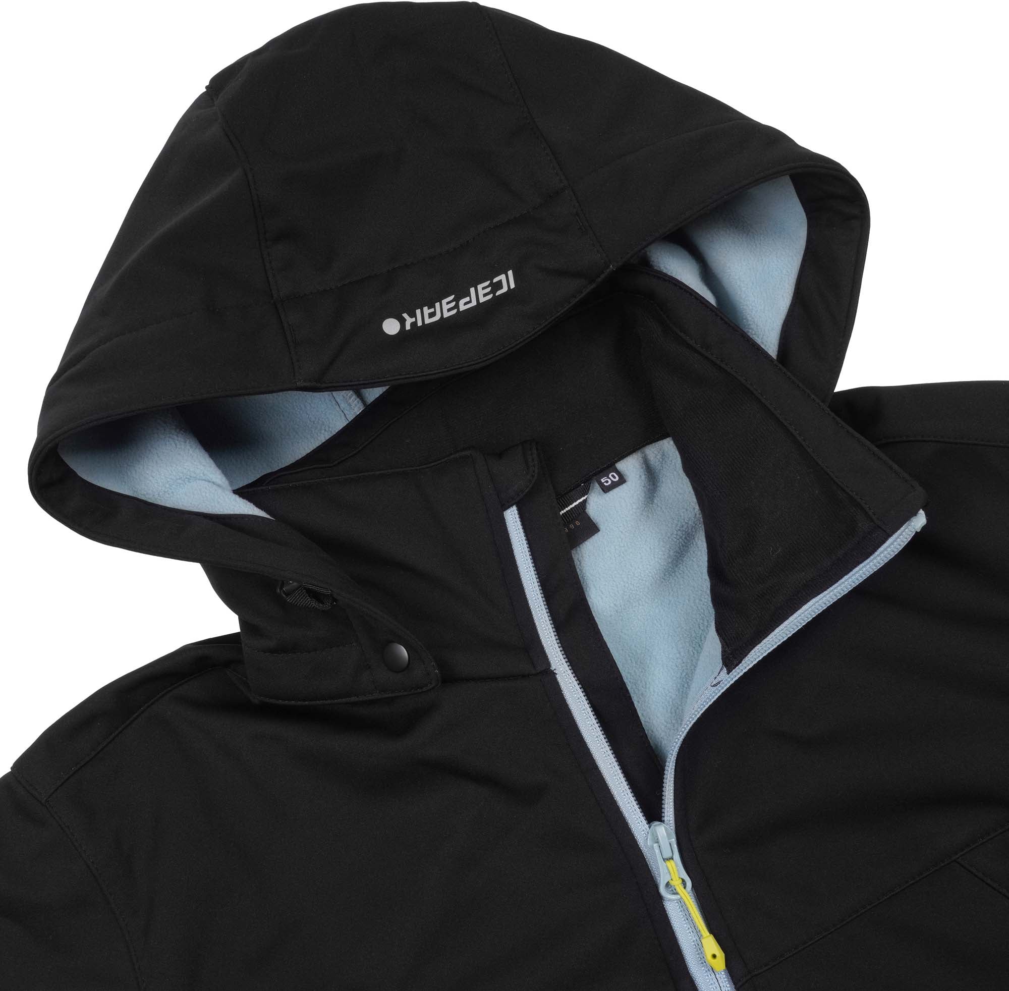Icepeak softshelljack voor heren. Normale pasvorm. Comfortabele binnenkraag. Afneembare en verstelbare capuchon. Verstelbare manchetten met klittenband. Twee voorzakken met ritssluiting. Windsluiting. Kinbescherming op de ritssluiting aan de voorkant. Verstelbare zoom. Waterkolom 8 000 mm. Ademend vermogen 3.000 g\m2\24u. Softshell is een functioneel materiaal voor een breed scala aan buitenactiviteiten. Het product biedt bescherming tegen weersinvloeden en is tegelijkertijd comfortabel flexibel. Er is speciale aandacht besteed aan functionaliteit en comfort tijdens het ontwerpproces van deze A.W.S. ACTIVE product, waardoor het geschikt is voor zowel energieke als ontspannen activiteiten. Het product is waterafstotend gemaakt zonder PFC's. Het oppervlak van de stof is behandeld met een waterafstotende afwerking. Ongevoerd.