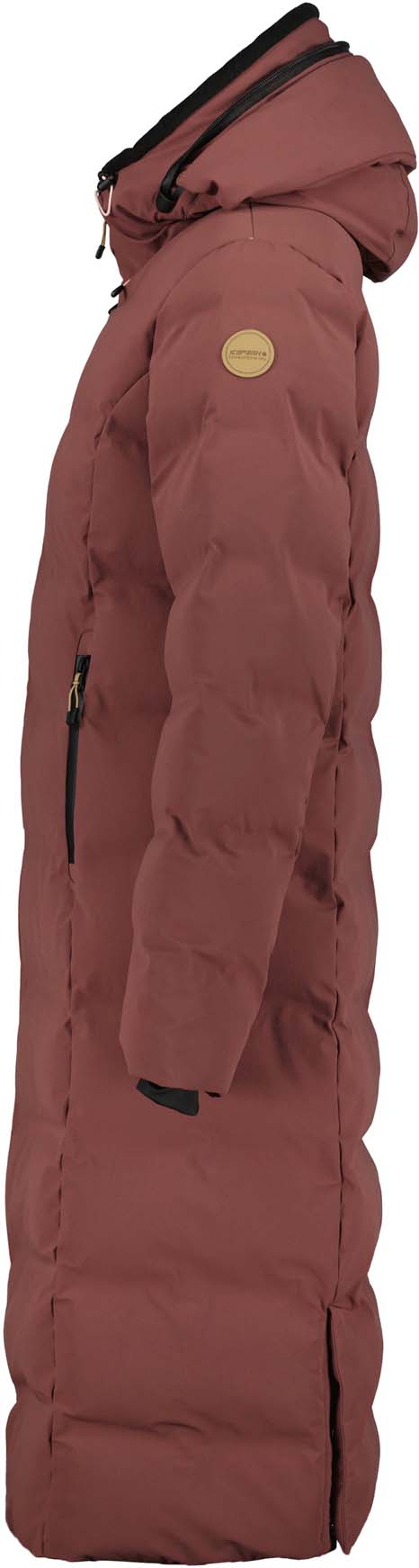 Icepeak jas voor dames. In twee richtingen verstelbare capuchon. Vaste capuchon. Elastische binnenmanchetten. Interne zak. Tweewegritssluiting aan de voorkant. Alle ritssluitingen waterafstotend. Splitten aan de zoom. Steekloos quilten. Vizier. Waterkolom 5 000 mm. Ademend vermogen 5.000 g\m2\24u. Er is speciale aandacht besteed aan functionaliteit en comfort tijdens het ontwerpproces van deze A.W.S. ACTIVE product, waardoor het geschikt is voor zowel energieke als ontspannen activiteiten. Het product is waterafstotend gemaakt zonder PFC's. Het oppervlak van de stof is behandeld met een waterafstotende afwerking. Dit winddichte materiaal biedt optimale windbescherming en warmte. Het 4-way stretchmateriaal rekt naar alle richtingen en geeft maximale bewegingsvrijheid. De vulling is gemaakt van donsimitatie en biedt een uitstekende thermische isolatie in verhouding tot het lichte gewicht. Gemaakt van een 2-laags stof, waarbij een waterdicht membraan is gebonden aan een multifunctioneel materiaal. Superwarme isolatie.