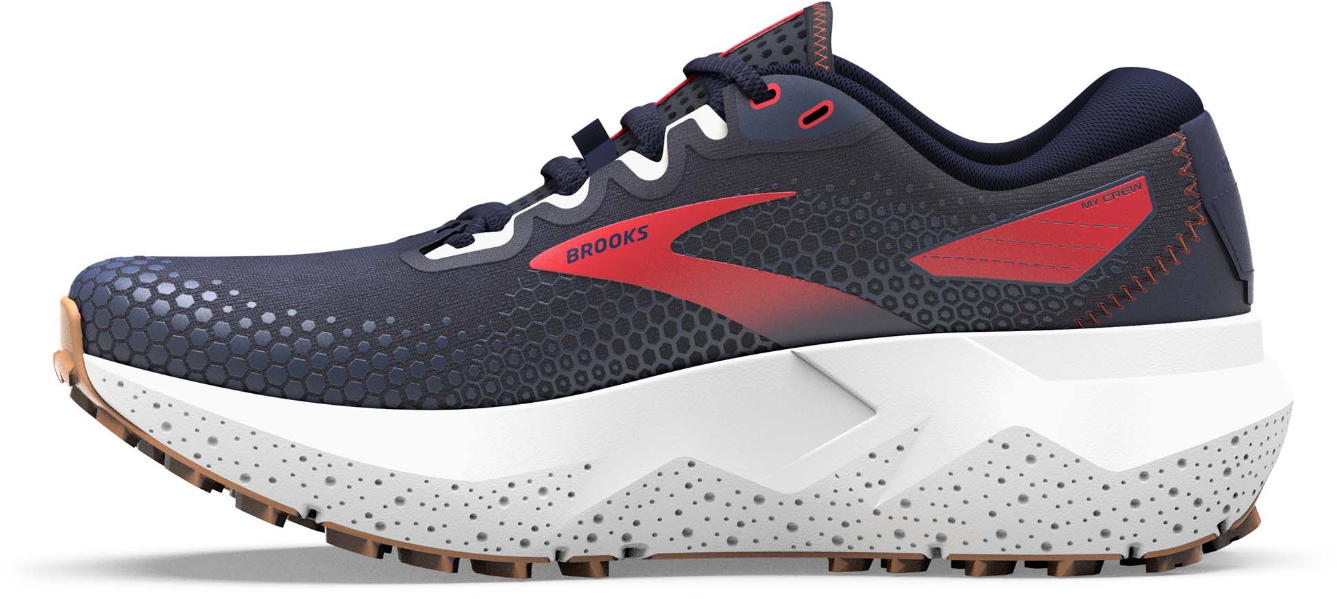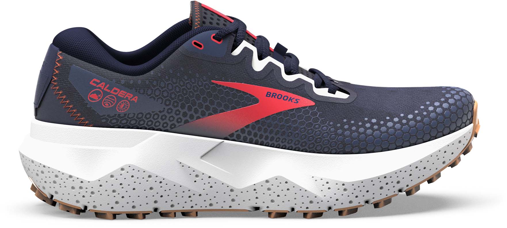 Pronatie: Trail. Gewicht: 278 gram. Drop: 6 mm. Bevat nu DNA LOFT v3 met stikstofinjectie, Brooks' zachtste demping die is geoptimaliseerd voor een lichtgewicht, responsief en duurzaam zacht comfort. De voet zit stevig binnen de verhoogde schuimwanden van de zool, terwijl de verbrede basis en de gespleten hiel je landingen stabiliseren en je soepel over oneffen terrein dragen. Een intern middenvoetzadel houdt de voet stevig vast zonder verlies van ademend vermogen, dankzij een nieuw, lichtgewicht en sneldrogend bovenwerk van air-mesh.