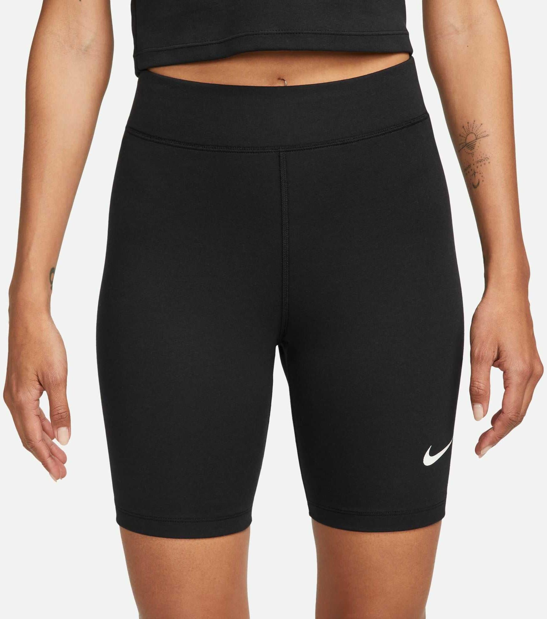 Nike Sportswear Classics Bikershorts met hoge taille voor dames (20 cm) Onze klassieke fietsbroek is ontworpen om je bij elke taak te ondersteunen. De broek is gemaakt van een combinatie van gerecyclede vezels en elastaan dat steviger en minder doorzichtig is, en is ontworpen om twee keer zo elastisch te zijn als onze vorige essentials. De fietsbroek is dik, maar toch licht, heerlijk zacht maar toch sterk, en rekt gemakkelijk mee met elke beweging. Een betere versie van onze fietsbroek. Voelt beter aan Het vernieuwde materiaal voelt aan als katoen, maar voert vocht af als synthetisch materiaal. Het is zo comfortabel dat je het het liefst elke dag wilt dragen. Beter dan ooit Het nieuwe materiaal is dik, zacht, stevig en ondoorzichtig. Of je nu staat, squats doet of zit, je achterwerk is altijd bedekt. Ziet er beter uit De precies juiste elastische tailleband is niet te breed en niet te smal. De tailleband is precies genoeg voor een strakke, aansluitende pasvorm. Het materiaal rolt, kruipt of gaapt niet, welke beweging je ook maakt.