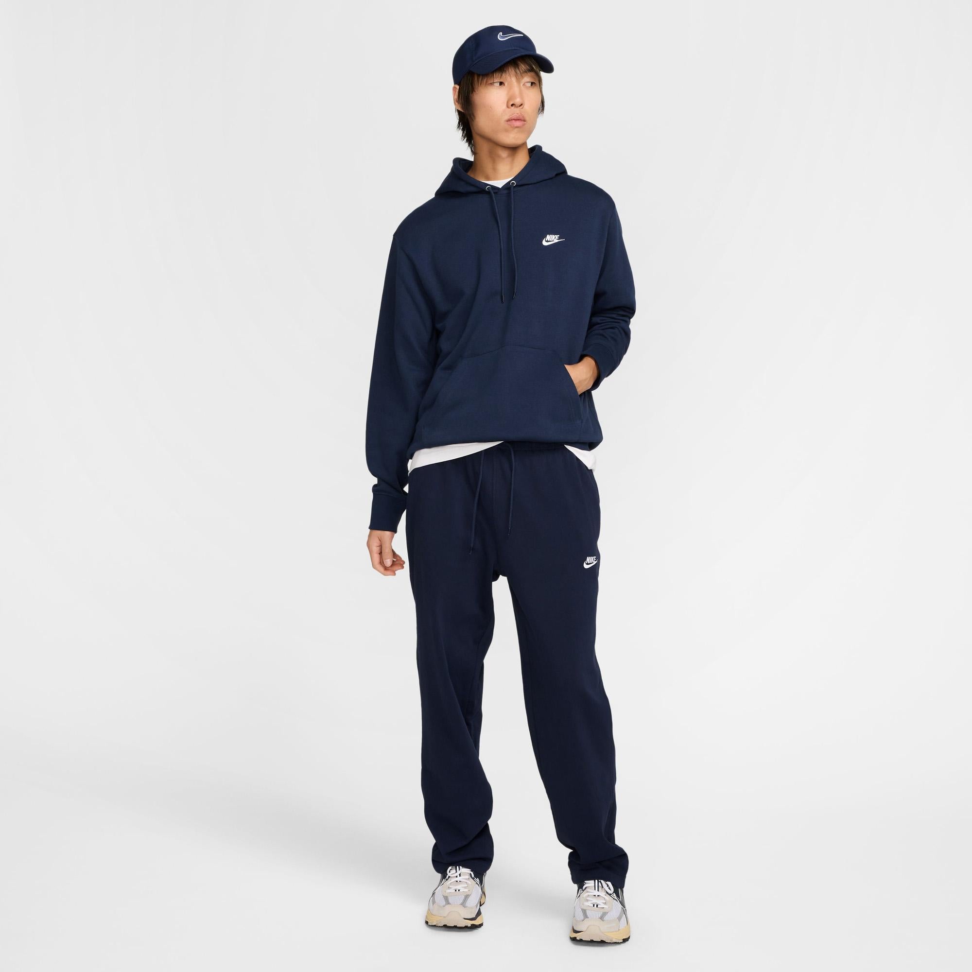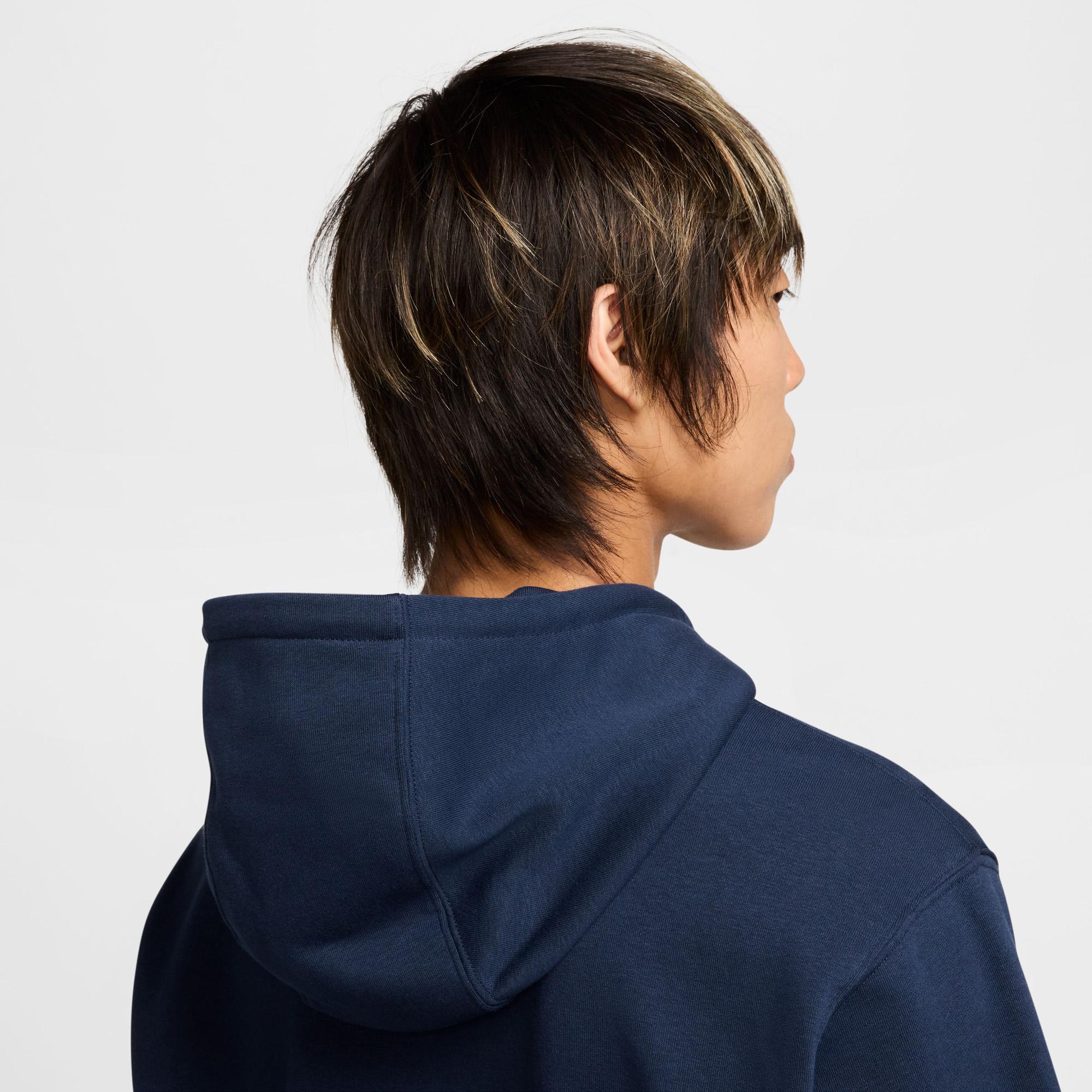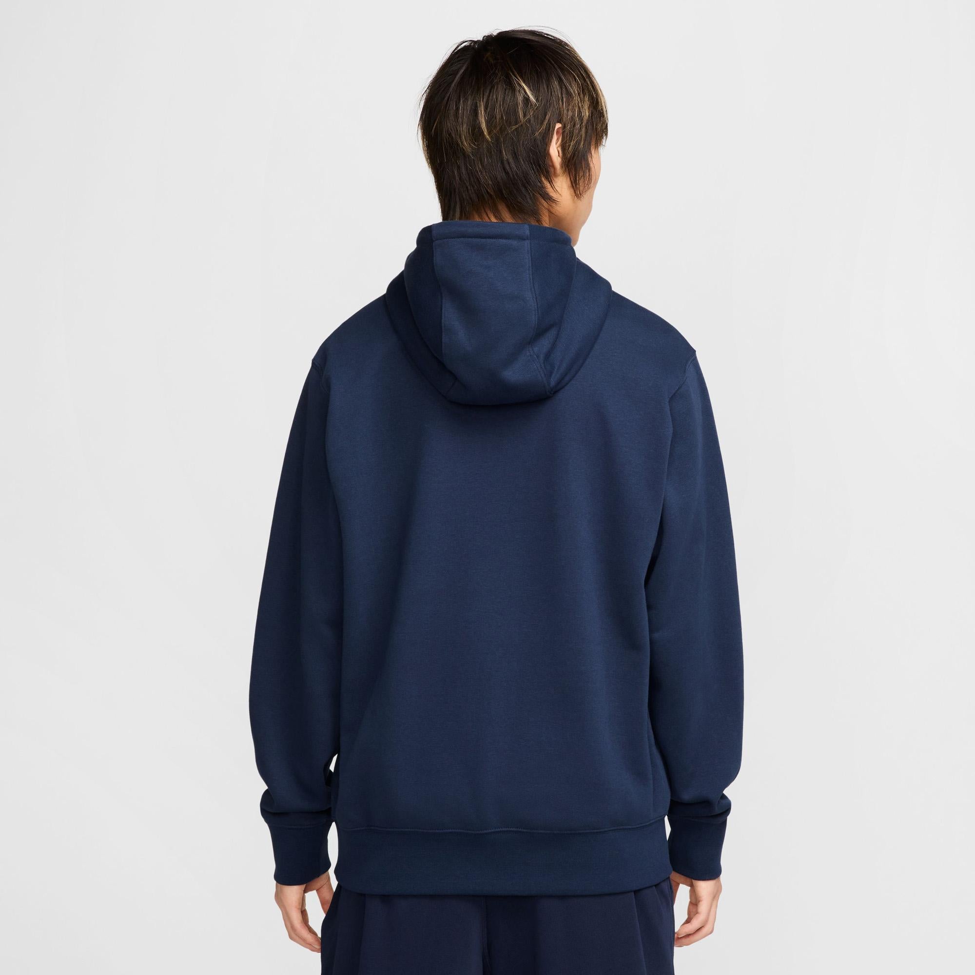 Nike Club Hoodie van sweatstof voor heren Als je een comfortabele pasvorm wilt, kun je dit sweatshirt aantrekken. De halfzware sweatstof voelt zacht aan en zorgt voor comfort, net als klassieke sweatshirts. Deze halfzware sweatstof (met ongeborstelde lusjes aan de binnenkant) zorgt voor structuur, ventilatie en een zacht gevoel, zodat je hem niet alleen in de sportschool maar ook op de bank kunt dragen. De standaardpasvorm heeft een relaxte feel zodat je gemakkelijk meerdere lagen kunt dragen. Een dubbellaagse capuchon van fleece en een rond, gevlochten trekkoord zorgen voor extra bedekking en flexibiliteit bij het stylen.