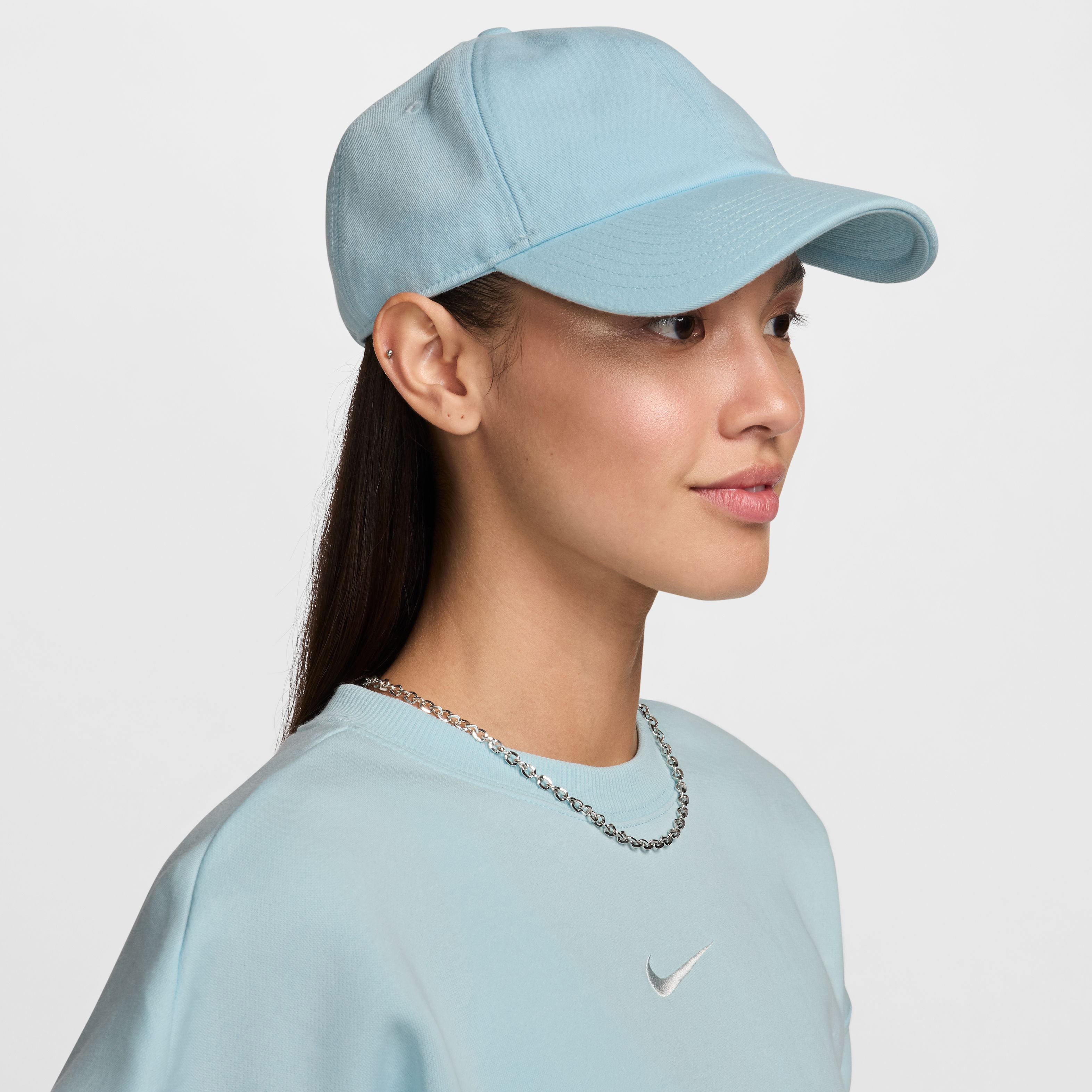 Nike Club Ongestructureerde pet met gebogen klep Deze Nike Club pet is middelhoog in een klassieke stijl voor iedere gelegenheid. Hij is gemaakt van soepele katoenen keperstof voor casual, dagelijks comfort. De pet is zacht en ongestructureerd en heeft een voorgevormde klep voor eenvoudige styling. Het verstelbare bandje aan de achterkant zorgt voor de juiste pasvorm voor langdurig comfort. Alle Club petten zijn geschikt voor dagelijks gebruik met een middelhoog design. Het ongestructureerde design met zacht kepermateriaal voelt glad en comfortabel aan. Design met zes vlakken en een voorgevormde klep voor een klassieke styling. Bandje achterop is verstelbaar en zorgt voor de juiste pasvorm.