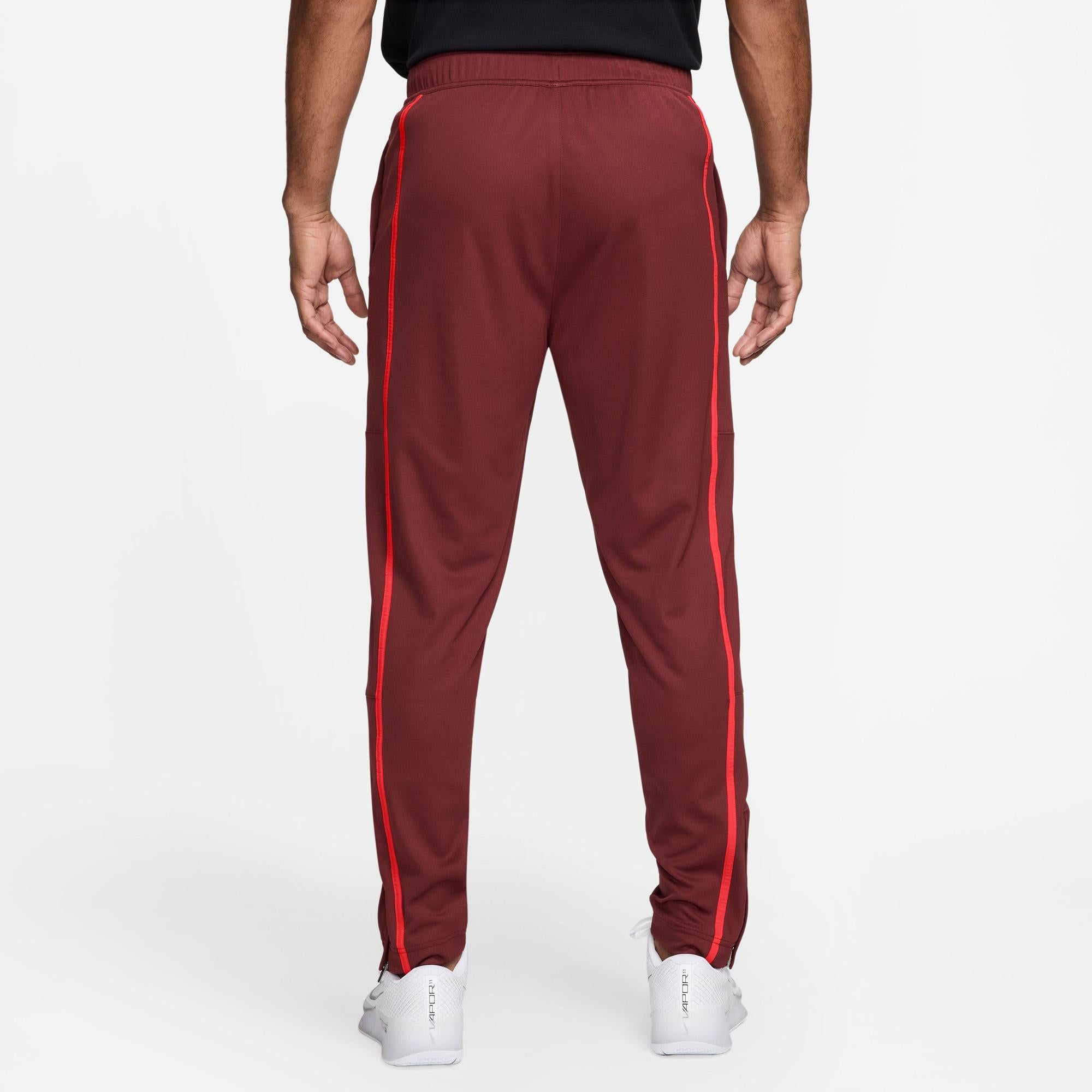 NikeCourt Heritage Tennistrainingsbroek voor heren Deze broek is net zo tijdloos als de sport zelf en geïnspireerd op klassieke trainingsbroeken om je outfit voor en na de wedstrijd naar een hoger niveau te tillen. Van het zachte, geborstelde materiaal tot taps toelopend pijpen: deze broek biedt al het comfort en zelfvertrouwen dat je buiten het veld maar kunt wensen. Het is bovendien gemaakt om je een goed gevoel over je spel te geven met vlakken en boorden met rits die een statement maken op de Center Court. Nike Dri-FIT technologie voert zweet weg van je huid voor snellere verdamping, zodat je droog en comfortabel blijft. Zacht poly-knit materiaal is geborsteld aan de binnenkant voor extra zachtheid. De kleurrijke NikeCourt patch op de borst is een knipoog naar de geschiedenis van Nike. Eenvoudig over je schoenen aan en uit te trekken dankzij ritsen bij de enkel.
