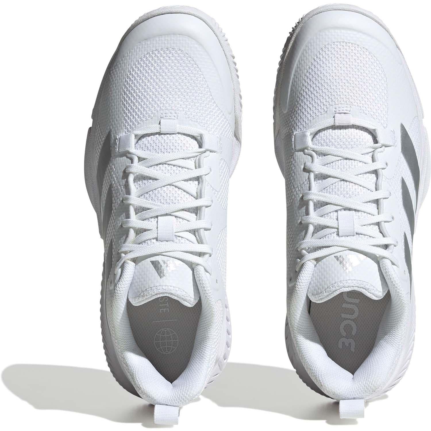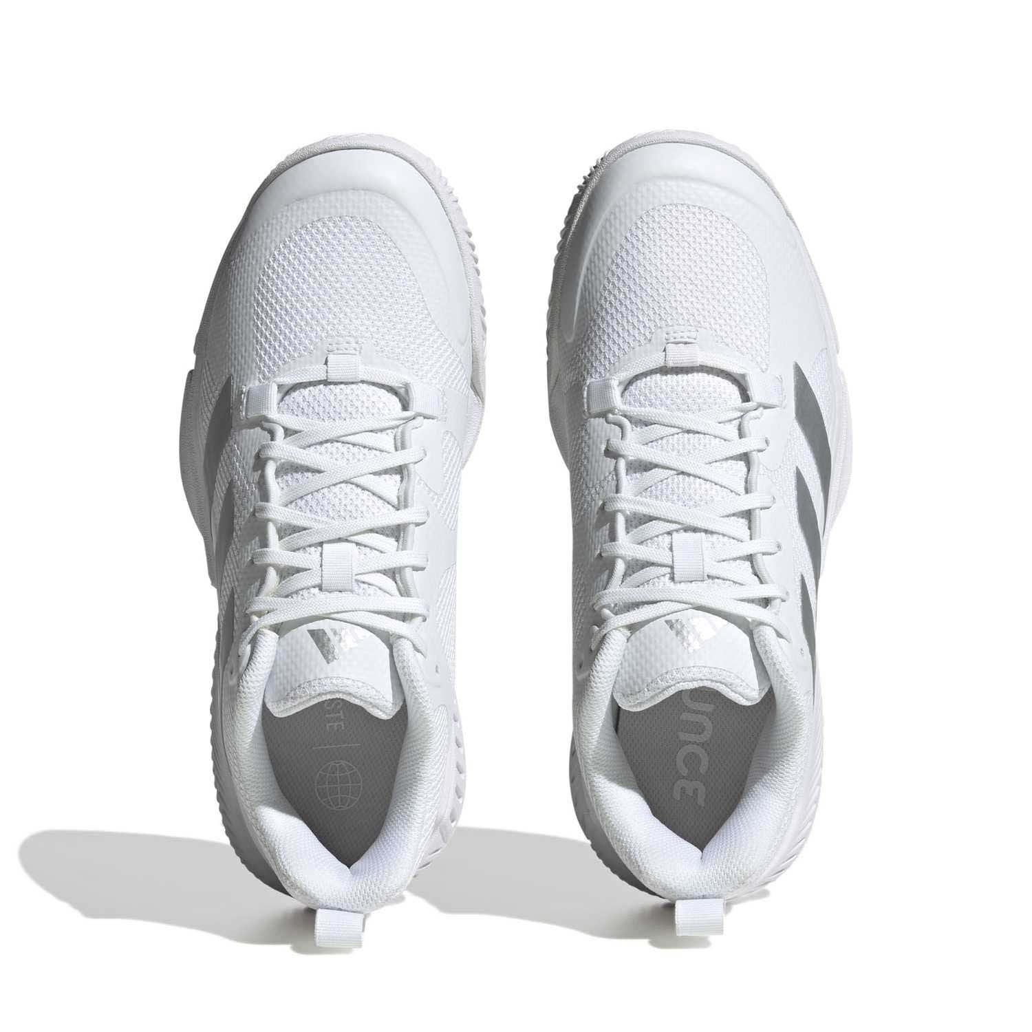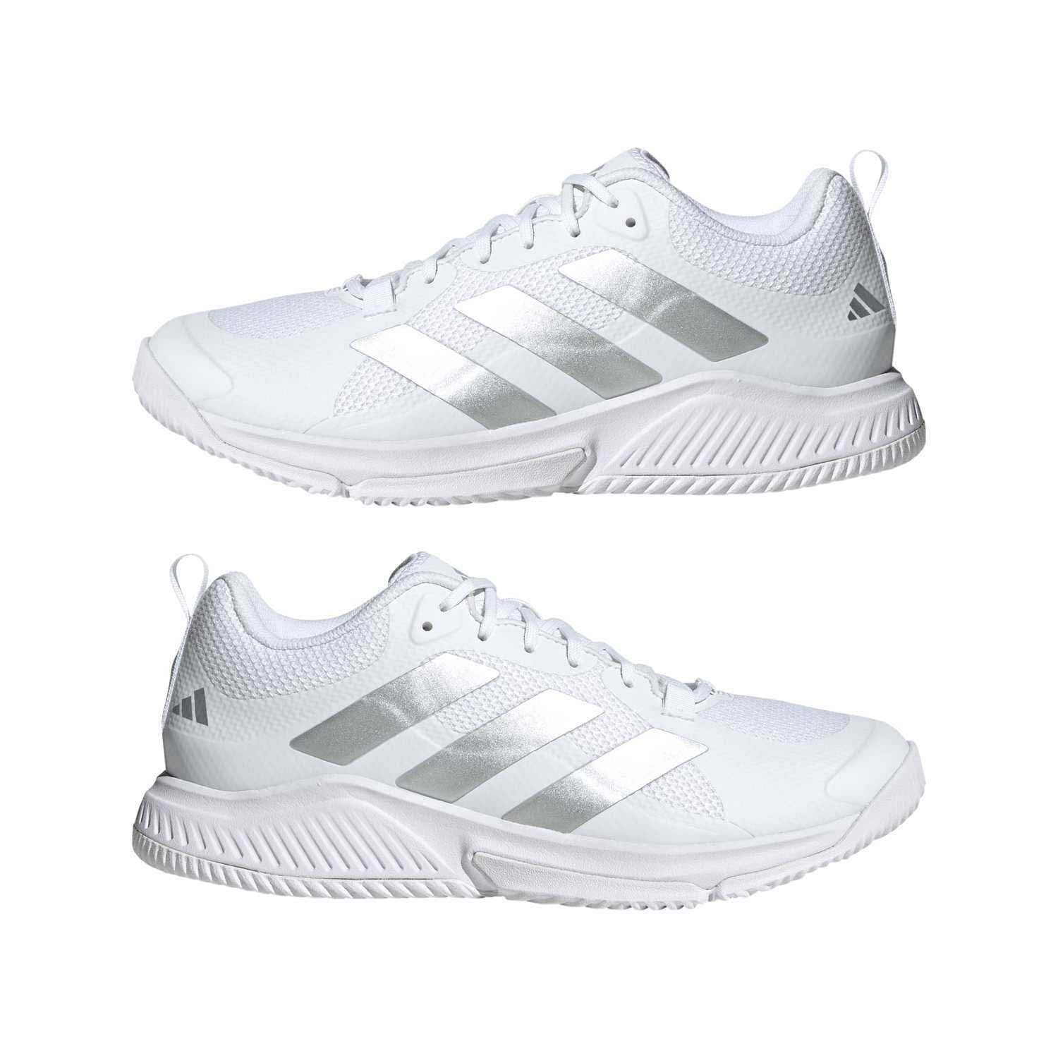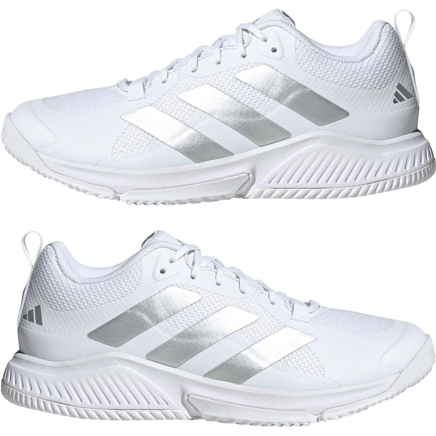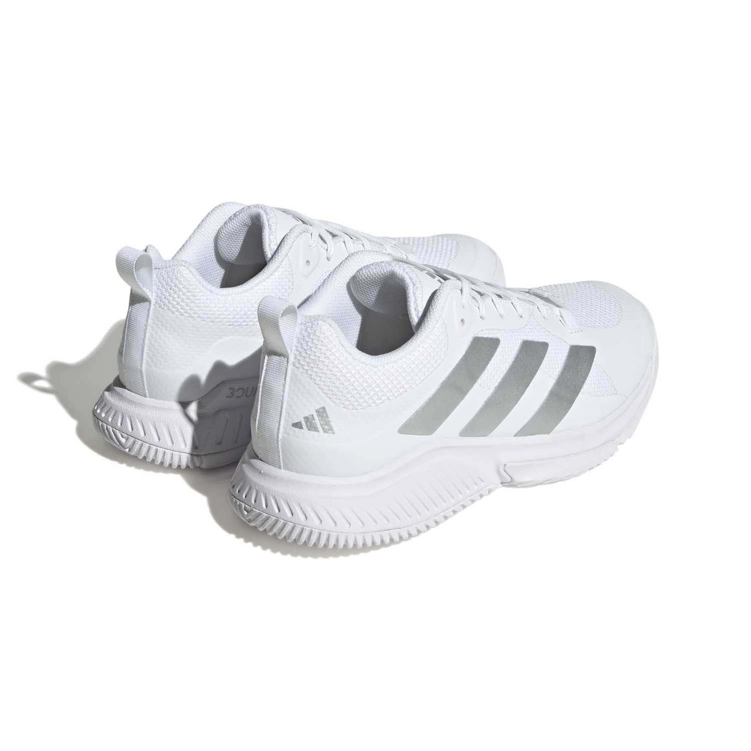 Welke zaalsport je ook beoefent, de Court Team Bounce 2.0 schoenen van adidas helpen je uitstekende prestaties neer te zetten. De Bounce-middenzool over de hele lengte maakt sprintjes soepeler en dempt ook de zwaarste landingen. Het bovenwerk van dubbellaags mesh, dat nauw rond je voet sluit voor betrouwbare verankering, is makkelijk aan en uit te trekken en biedt versterking voor extra stabiliteit tijdens je abrupte zijwaartse bewegingen. De rubberen loopzool biedt grip op harde, vlakke ondergronden voor de responsiviteit die je nodig hebt om te schitteren.