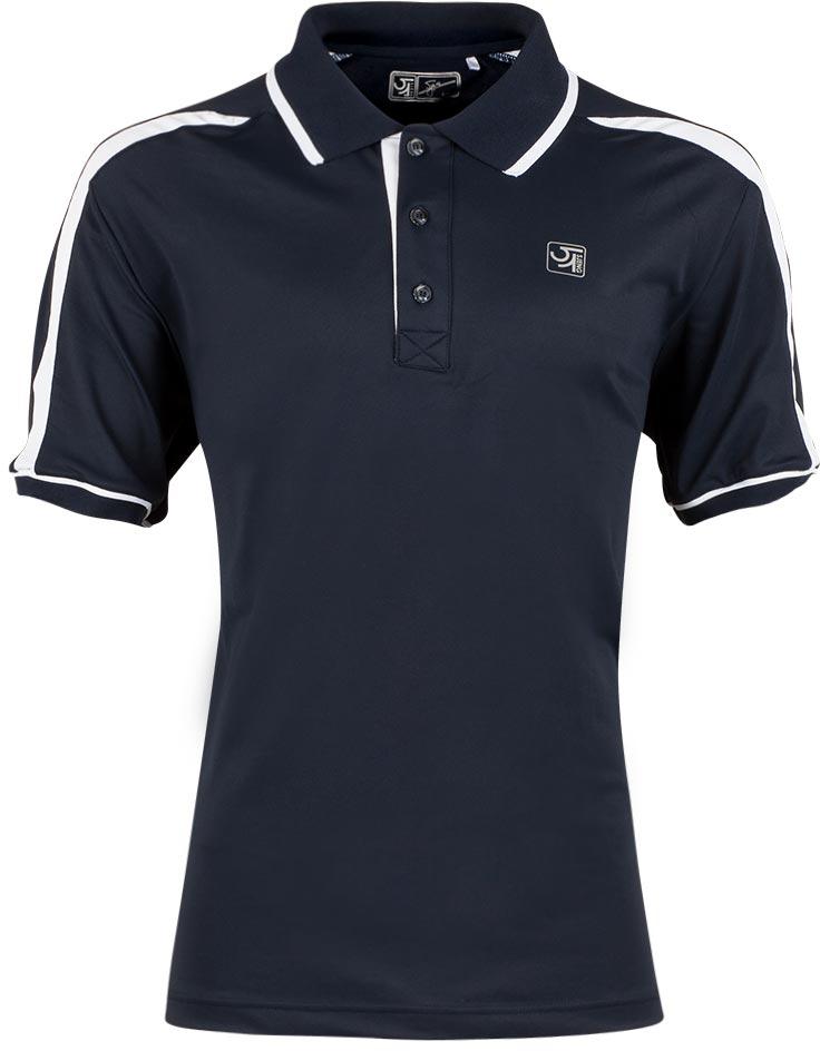 De Sjeng Sports polo Deacon beschikt over een normale pasvorm en biedt de nodige bewegingsvrijheid dankzij het lichtgewicht stretchmateriaal. De sportieve polo heeft een traditionele polokraag met knoopsluiting en is afgewerkt met het logo van Sjeng Sports op de voorzijde. In deze polo blijf je op een comfortabele manier droog en koel op de tennisbaan waardoor er optimaal gepresteerd kan worden.