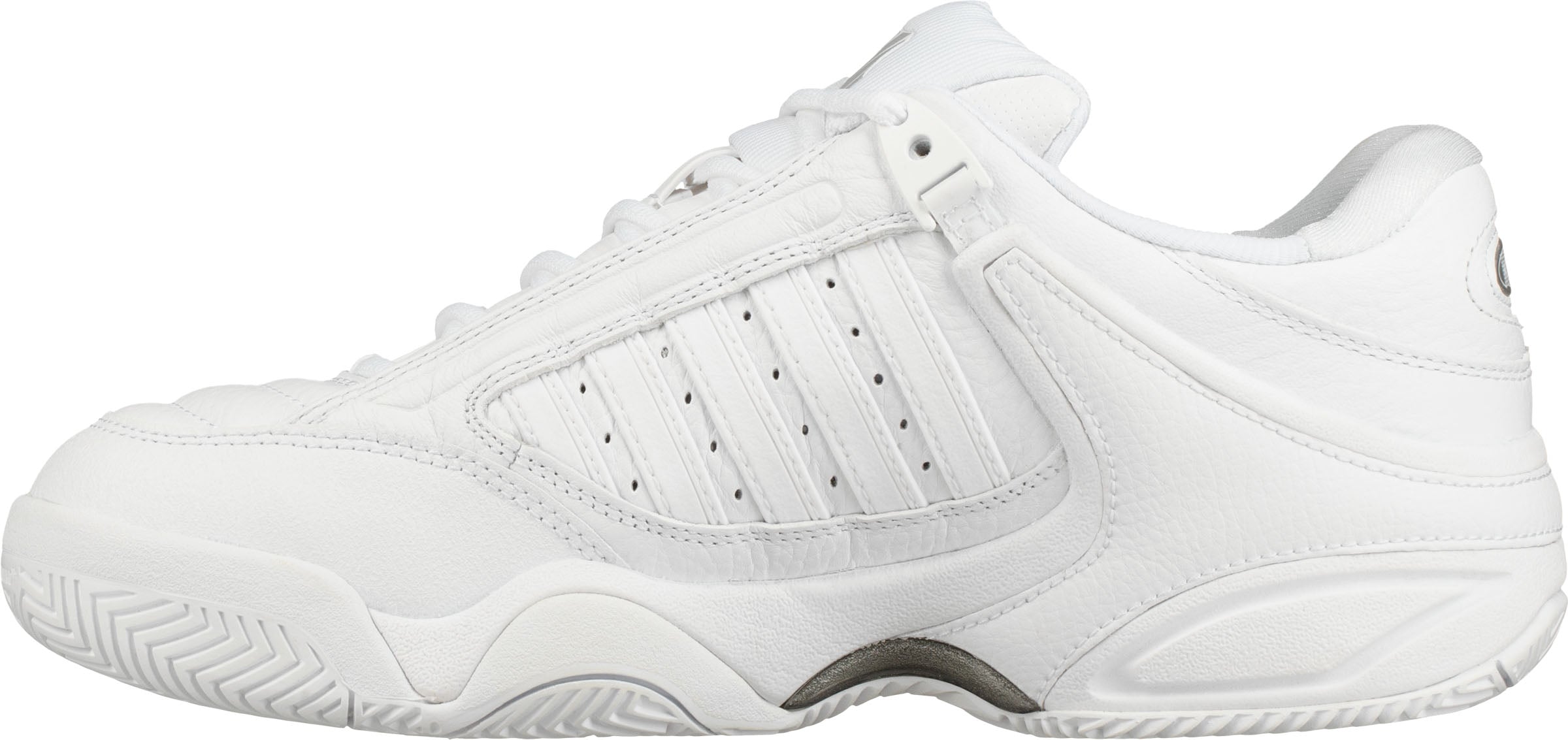 De K-Swiss Defier RS is een duurzame schoen met klassiek en tijdloos design die zorgt voor veel stabiliteit en een hoge slijtvastheid. De buitenzijde bevat een mix van natuurlijk en synthetisch leer wat zorgt voor een uitstekende combinatie van duurzaamheid en comfort. Bovendien zorgt de combinatie van het leer voor een waterafstotende en slijtvaste buitenzijde die de voet droog houdt. De schoen biedt uitstekende stabiliteit en zorgt voor extra comfort en ondersteuning. De DuraWrap en DragGuard in de buitenzool zorgen voor een extra laag bescherming op essentiële steunpunten van de schoen. De voorgevormde EVA tussenzool zorgt voor maximale schokdemping en extra duurzaamheid. De Ortholite binnenzool zorgt voor lichte demping. Daarnaast zorgt de TPU middenvoetsconstructie voor extra ondersteuning en stabiliteit. De rubberen Aosta 7.0 buitenzool heeft een hoge dichtheid en zorgt voor een hoge duurzaamheid van hiel tot teen. De non-marking zool biedt dankzij het