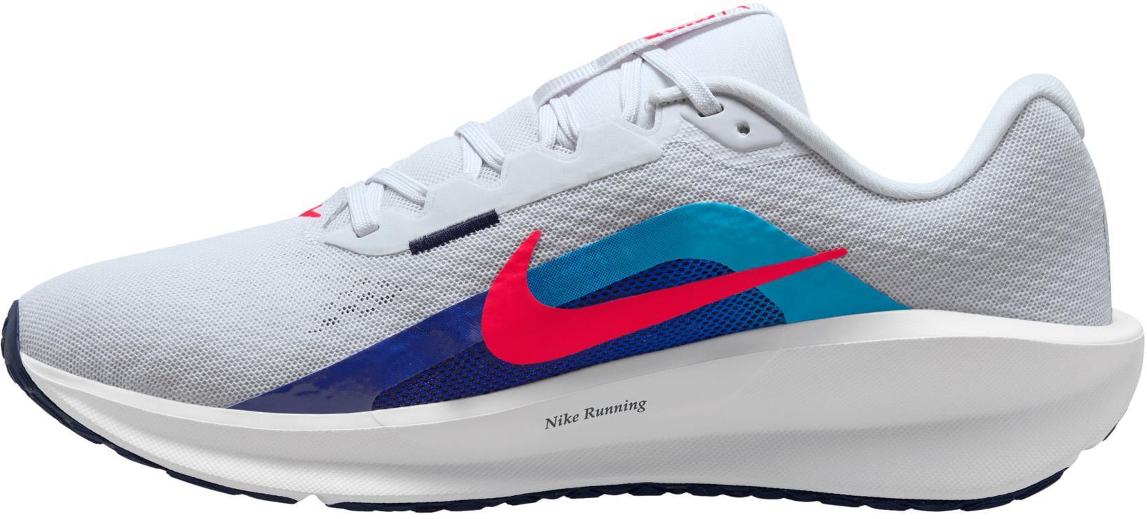 Nike Downshifter 13 Hardloopschoenen voor heren (straat) Of je nu enthousiast aan je hardloopavontuur begint of een expert bent die graag zijn of haar tempo wil verbeteren, de Downshifter 13 is er klaar voor. Met een nieuw, zacht bovenwerk, demping en stevigheid, helpt hij je die extra versnelling te vinden of gewoon die verwachtingsvolle eerste stap te zetten. Ventilerende mesh Nieuwe sandwich mesh voelt zacht en comfortabel aan en is zeer ventilerend. Ondersteunend en stevig De vernieuwde interne band biedt fantastische omsluiting rond de middenvoet voor ondersteuning en een stevig gevoel. Het is beter zichtbaar dan in de Downshifter 12. Soepel hardlopen Soepel, gerecycled foam zorgt voor een consistentere run zonder in te leveren op demping en ondersteuning. Kies voor Grind De stevige buitenzool van groen rubber is gemaakt met 13% Nike Grind. Hij is slijtvast van de neus tot de hak en heeft noppen voor stevigheid en grip.