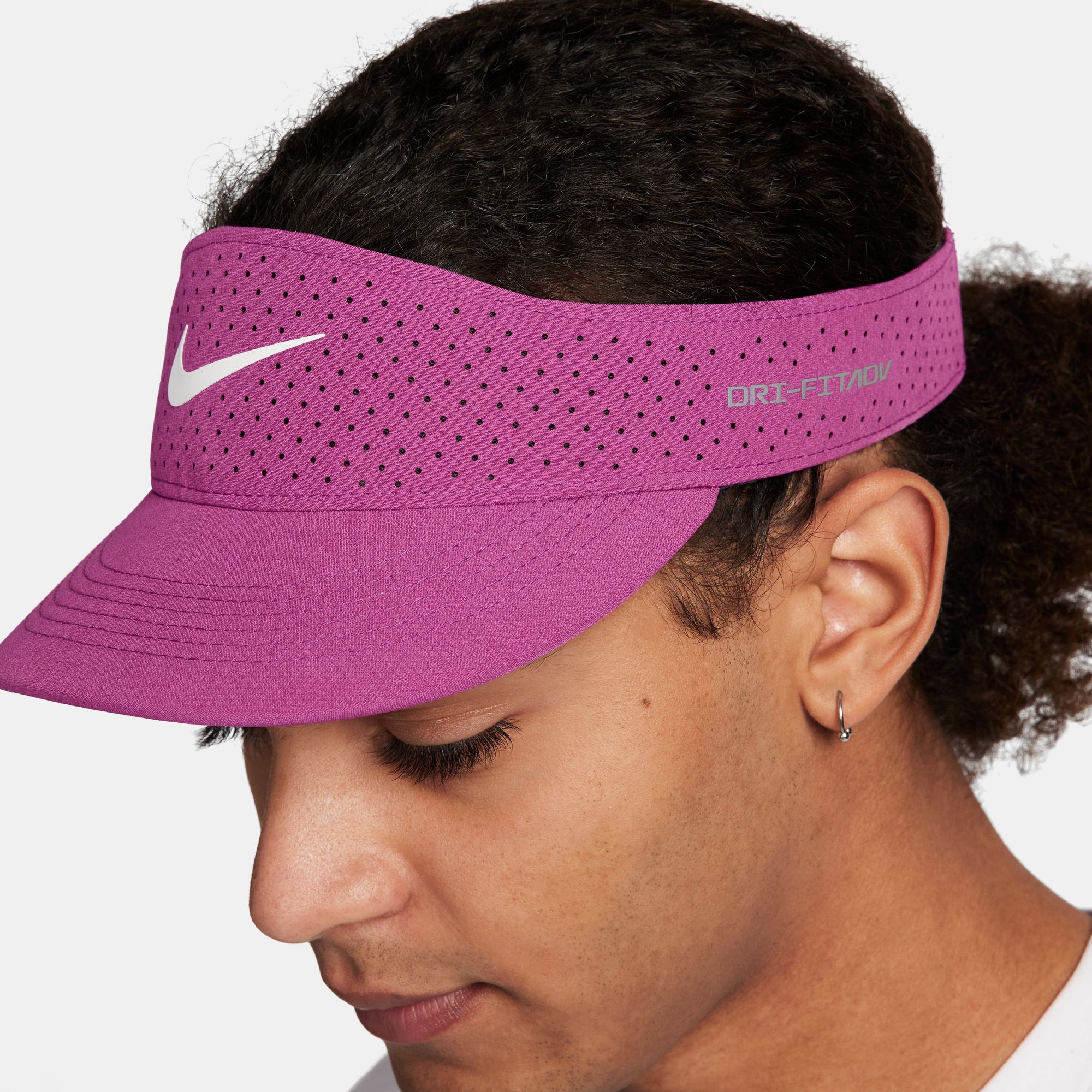 Nike Dri-FIT ADV Ace Tenniszonneklep Deze ongestructureerde, lage zonneklep is gemaakt voor tennisliefhebbers, zowel voor op de baan als daarbuiten. Ventilatie in het design zorgt voor een luchtig gevoel waar je dat het hardst nodig hebt en het elastische, zweetafvoerende materiaal zorgt dat je fris blijft. De verkorte AeroBill is ontworpen voor minimale afleidingen tijdens het serveren, zodat je vol zelfvertrouwen op je best kunt spelen. Nike Dri-FIT ADV technologie combineert vochtafvoerend materiaal met geavanceerde technieken en eigenschappen, zodat je droog en comfortabel blijft. De kortere Aerobill is ventilerend en zorgt voor minder afleiding. Het bandje aan de achterkant kun je eenvoudig aanpassen voor de juiste pasvorm. Perforaties rond de kroon zijn strategisch geplaatst op basis van gegevens over de zweetafvoer. UV-bescherming houdt de zon tegen op plaatsen die door de klep bedekt zijn. Geperforeerde voering zorgt voor extra ventilatie.