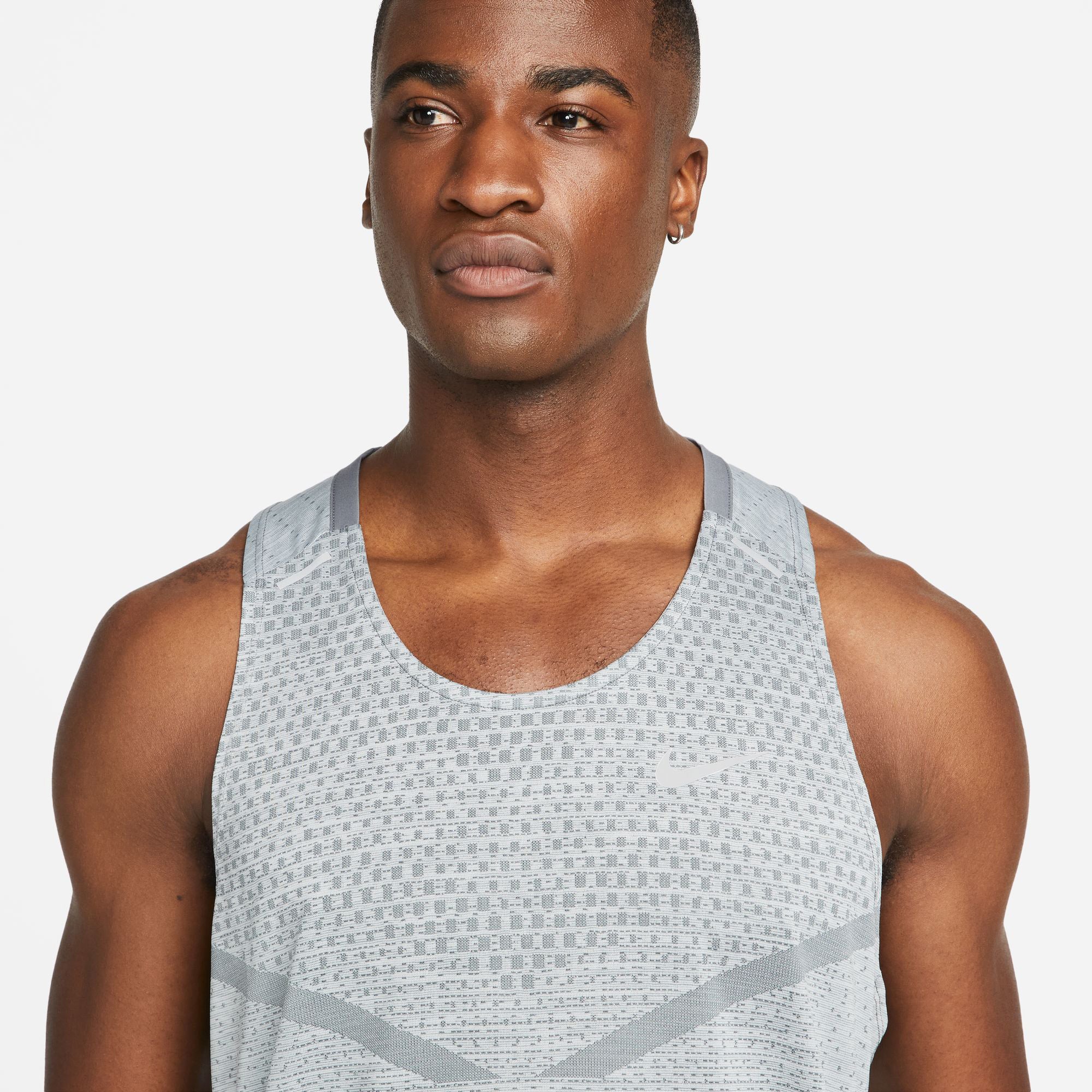 ULTRA VENTILEREND, ULTRA COOL. Zo licht als lucht. Koel als een briesje. De Nike Dri-FIT ADV TeckKnit Ultra tanktop is gemaakt met een ventilerende technologie die zweet afvoert om de warm buiten te houden en te zorgen dat je je kunt concentreren op de weg. Het geavanceerde design is speciaal ontwikkeld voor beweging, zodat je vrij kunt vliegen tijdens je run. Minder zweet, beter gevoel Nike Dri-FIT ADV technologie combineert vochtafvoerend materiaal met geavanceerde technieken en kenmerken zodat je droog en comfortabel blijft. Minimalistische naden zorgen voor een zacht, soepel gevoel. Verkoeling in warme zones Ademend knit materiaal op de borst en op de achterkant zorgt voor goede ventilatie en een koel gevoel tijdens het hardlopen. We hebben echte hardlopers (zoals jij) getest om te ontdekken welke plekken op je lichaam het warmst worden, zodat we ventilatie kunnen plaatsen op belangrijke plekken. De look van een klassieker De knit structuur van de top vormt de iconische Nike v-opdruk aan de voorkant, als eerbetoon aan de look van het Windrunner jack uit 1978.