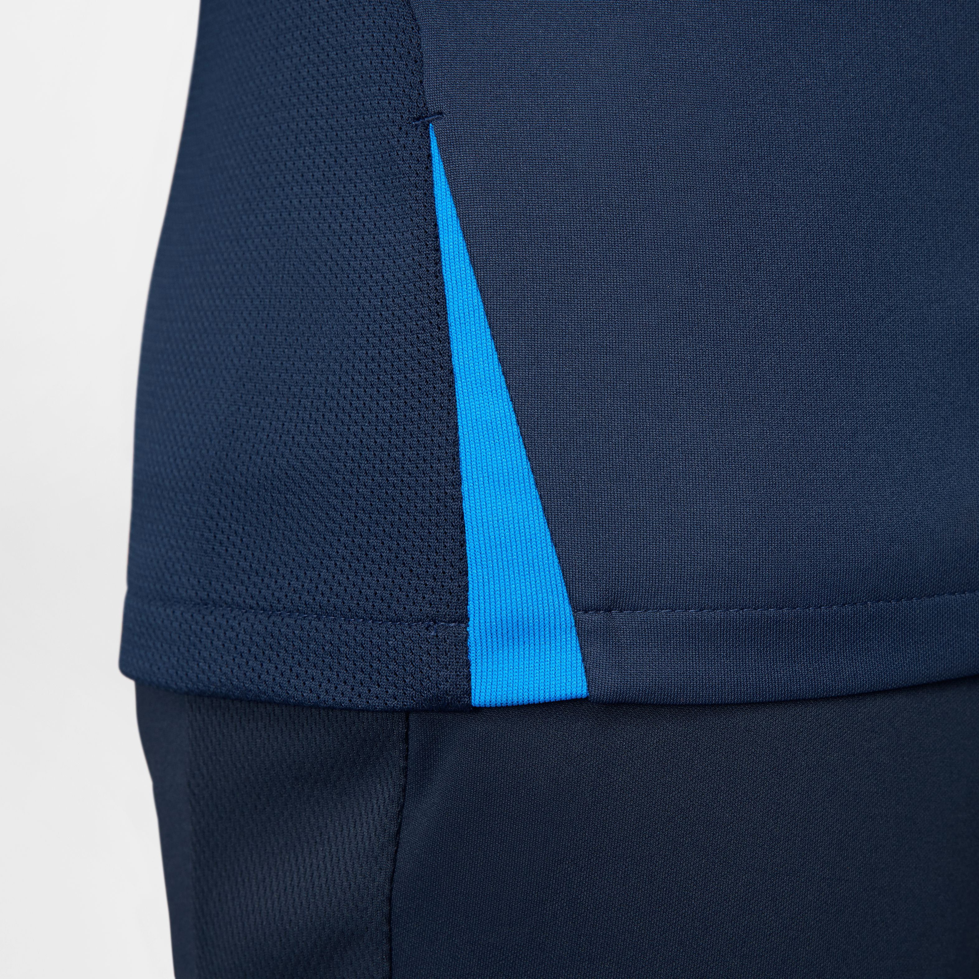Laat je team in wedstrijdklare stijl het veld opgaan met de lichtgewicht Nike Strike Jersey. Een slanke, gestroomlijnde pasvorm zorgt ervoor dat er niets tussen je spelers en de bal komt. Bovendien werkt zweetafvoerend materiaal met ademende mesh om atleten koel en kalm te houden tijdens snel spelen. Kies uit 9 verschillende kleuren om je team uit te rusten. Nike Dri-FIT technologie voert zweet weg van de huid van atleten voor snelle verdamping, waardoor ze droog en comfortabel blijven. Ademend gaas aan de achterkant en onder de armen houdt spelers koel. Geribbelde inzetstukken rekken mee met atleten om hen te helpen onbeperkt te bewegen.