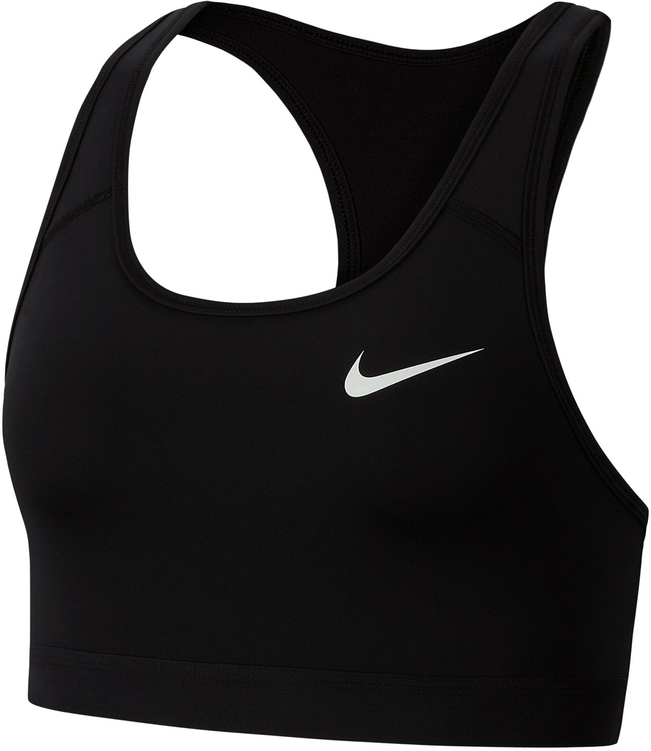 Nike Swoosh Women's Medium-Support Sports Bra KLASSIEK COMFORT EN ONDERSTEUNING. De Nike Dri-FIT Swoosh sport-bh biedt ondersteuning waar je op kunt rekenen. Deze non-padded stijl is gemaakt van zacht, soepel materiaal en heeft een zichtbare, elastische band aan de onderkant die ervoor zorgt dat alles goed blijft zitten. Zweetafvoerende technologie houdt je droog en comfortabel. Dit product is gemaakt met minstens 50% gerecyclede polyestervezels. Zweetafvoerende kracht Dri-FIT technologie houdt je droog en comfortabel. Ondersteuning en comfort Zichtbare elastische band glijdt niet weg zodat hij goed blijft zitten Bewegingsvrijheid Dankzij het design met racerback kun je je vrij bewegen.