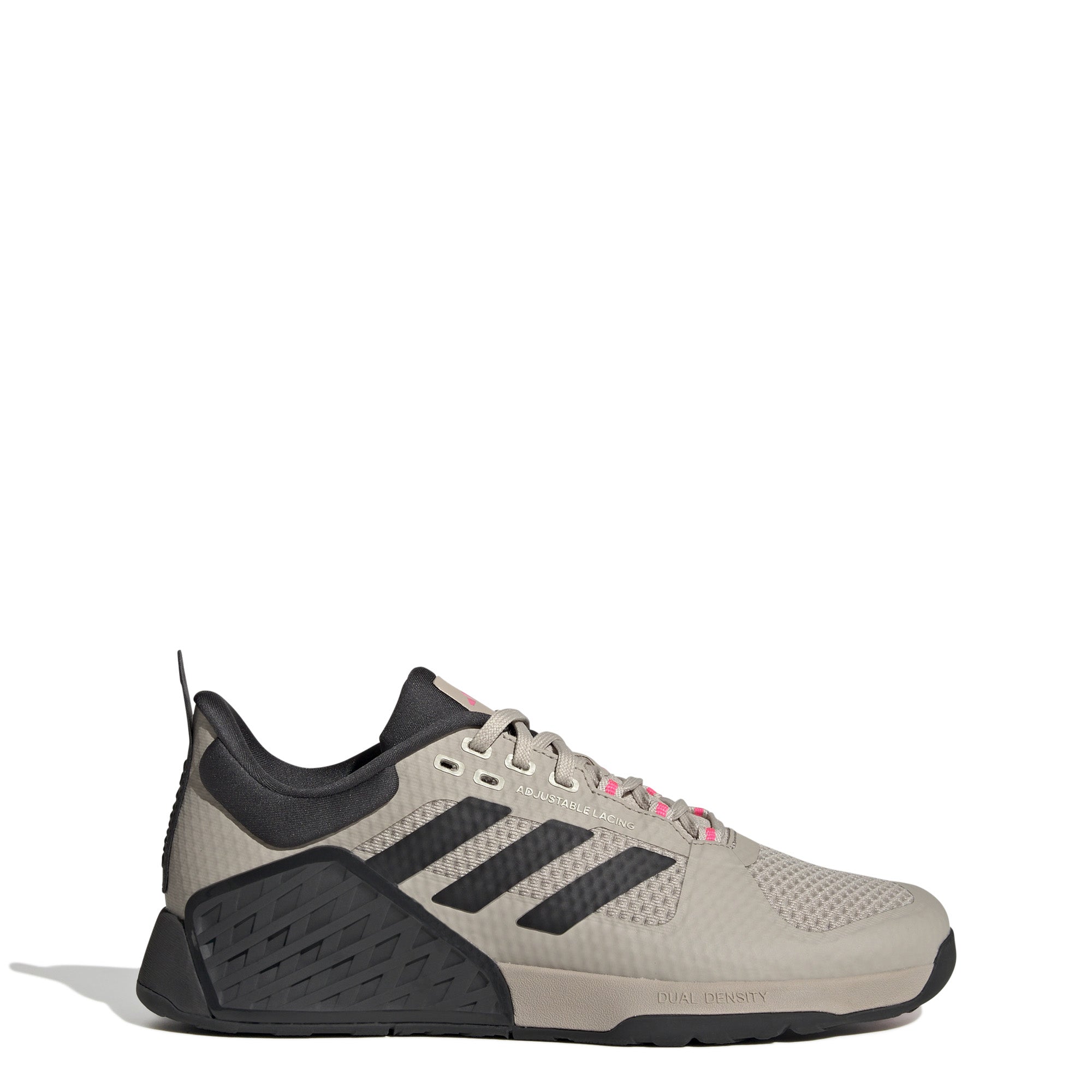 Het gevoel van de barbell in je handen, het geluid van de schijven die tegen elkaar geschoven worden, het zoemen van de intervalbuzzer. Er gaat niets boven een geweldige training, en deze adidas sportschoenen bieden uitstekende performance tijdens krachtsessies. De middenzooldrop van 6 mm geeft je een vlak en stabiel platform om je te helpen de juiste houding te vinden voor al je oefeningen. De middenzool met twee dichtheden biedt comfort en beheerste stabiliteit, en de stroeve Traxion-loopzool geeft je houvast op de vloer.