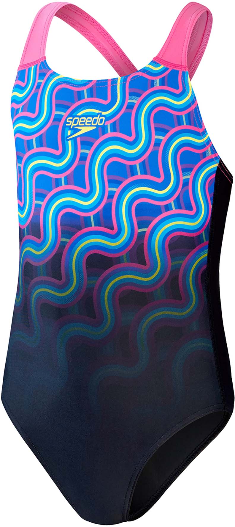 Geef training en lessen energie met dit opvallende Splashback-zwempak met een kleurrijk, vervagend printontwerp. De schouderbanden zijn weg van de schouders geplaatst om de bewegingsvrijheid te vergroten, zodat jonge zwemmers kunnen trainen zonder zich beperkt te voelen. Het zwempak biedt een hogere chloorbestendigheid dan standaard badkledingstoffen, biedt uitstekende vormbehoud en past langer als nieuw met CREORA® HighClo. Daarnaast zijn nylongarens in de EnduraFlex-stof gemaakt van 100% pre-consumer afval, zoals afvalstof van fabrieken.
