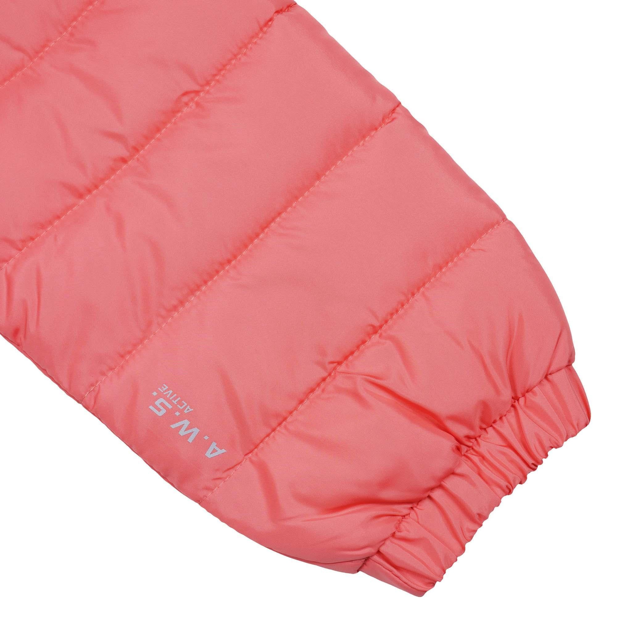 De Luhta gewatteerde jas voor dames is voorzien van een vaste capuchon, een ritssluiting aan de voorkant met een decoratieve extra rits, twee voorzakken met rits, elastische manchetten en een verstelbare zoom voor een comfortabele pasvorm. De jas is afgewerkt met een subtiel logolabel en gemaakt van REPREVE® polyester dat afkomstig is van 100% gerecycled materiaal, waaronder gebruikte plastic flessen. De vulling bestaat uit een lichtgewicht imitatie-dons die uitstekende thermische isolatie biedt zonder zwaar aan te voelen. De buitenstof is behandeld met een waterafstotende finish en is volledig winddicht, wat zorgt voor betrouwbare bescherming tegen kou en wind. Als onderdeel van de A.W.S. ACTIVE-lijn is deze jas ontworpen met oog voor zowel functionaliteit als draagcomfort, waardoor hij perfect geschikt is voor actieve bezigheden en dagelijks gebruik.