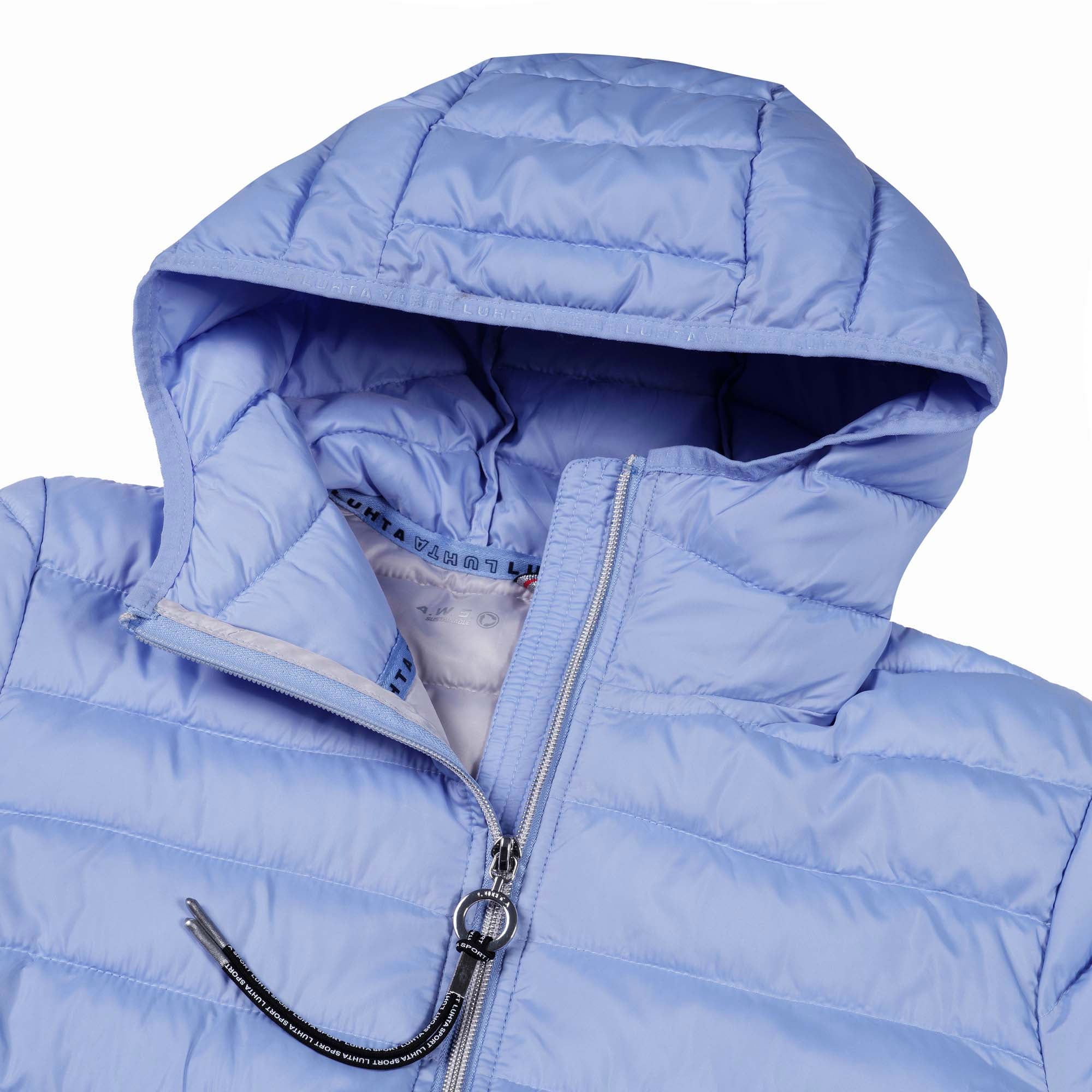 Luhta jas voor dames. Vaste capuchon. Twee voorzakken met ritssluiting. Decoratieve ritssluiting aan de voorkant. Ritssluiting aan de voorkant. Verstelbare zoom. Logo-label. Er is speciale aandacht besteed aan functionaliteit en comfort tijdens het ontwerpproces van deze A.W.S. ACTIVE product, waardoor het geschikt is voor zowel energieke als ontspannen activiteiten. Het product is waterafstotend gemaakt zonder PFC's. De vulling is gemaakt van donsimitatie en biedt een uitstekende thermische isolatie in verhouding tot het lichte gewicht. Bevat REPREVE®-polyester gemaakt van 100% gerecyclede materialen, inclusief plastic flessen na consumptie. Dit product bevat gerecyclede materialen, waardoor de impact op ons milieu kleiner is. Het oppervlak van de stof is behandeld met een waterafstotende afwerking. Dit winddichte materiaal biedt optimale windbescherming en warmte. Lichte isolatie.