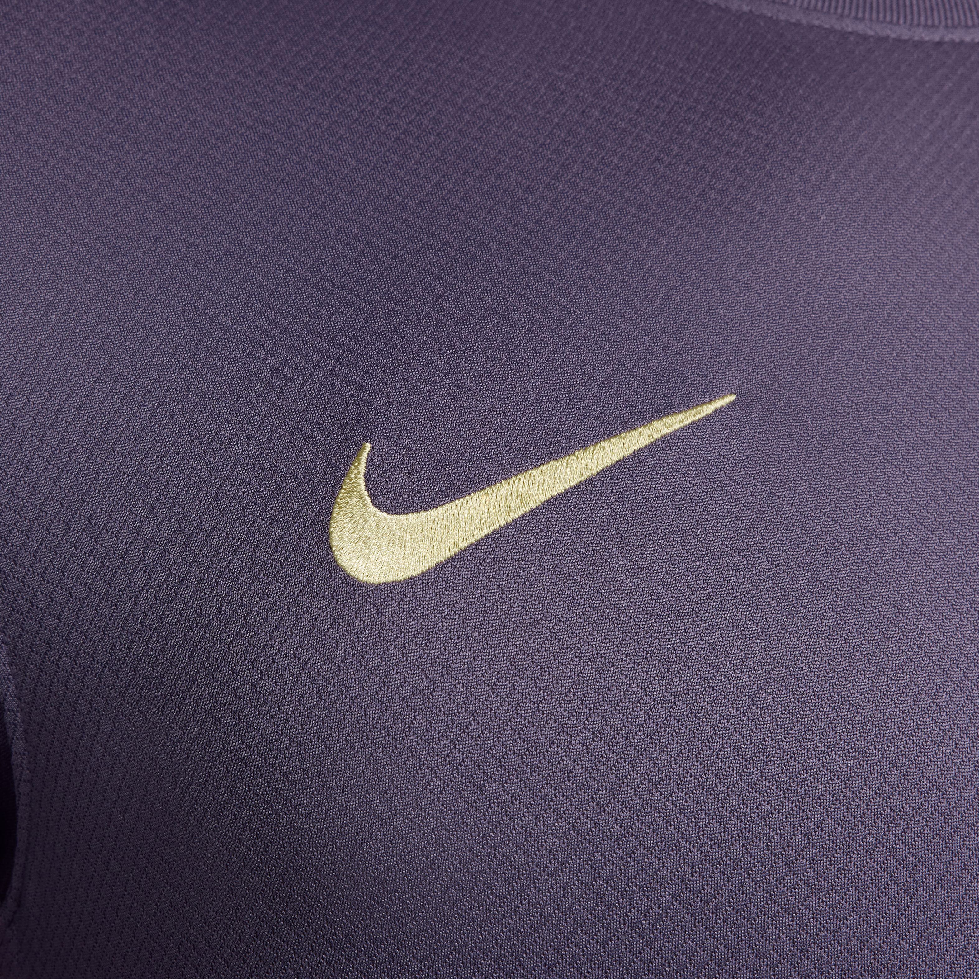Het nieuwe Engelse uitshirt voor 2024 is een mix van traditie en vernieuwing. We hebben hun bekende rode en blauwe kleuren gecombineerd tot een paars tenue dat hun rijke geschiedenis eert, terwijl het tegelijkertijd de toekomst van het team viert. Opvallende zijpanelen en andere unieke details geven het shirt een moderne uitstraling die perfect past bij het hedendaagse Engelse voetbal. Met Nike Dri-FIT technologie blijf je droog en comfortabel doordat zweet snel van je huid wordt afgevoerd. Onze Stadium-collectie biedt een mix van authentieke ontwerpdetails en vochtregulerende technologie, waardoor je een look krijgt die klaar is voor de wedstrijd en geïnspireerd is op je favoriete team.