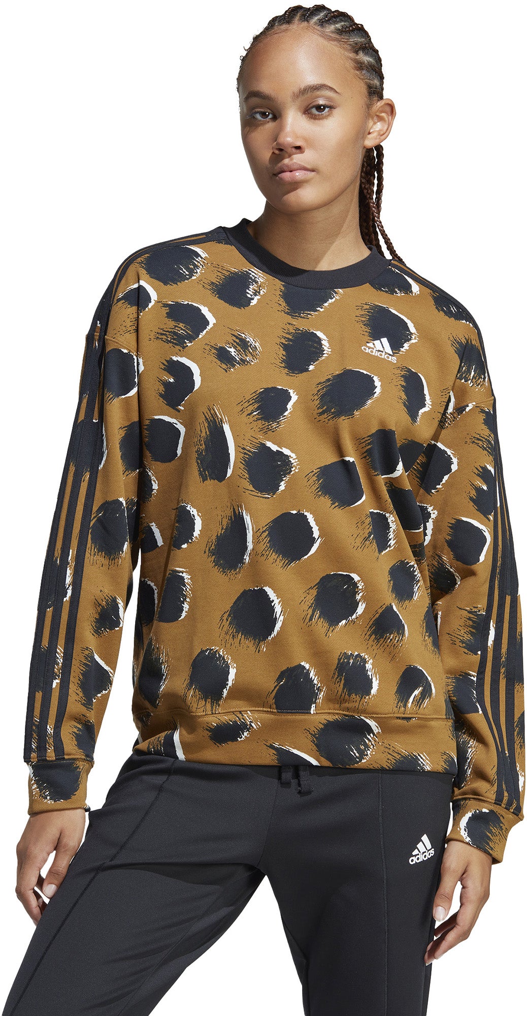 Een dierenprint past overal bij. Daarnaast krijgt je outfit er moeiteloos extra stijl van. Dat nonchalante gemak staat centraal in dit adidas sweatshirt. Het design garandeert twee dingen: je zult opvallen én je zult je comfortabel voelen in de zachte sweaterstof.