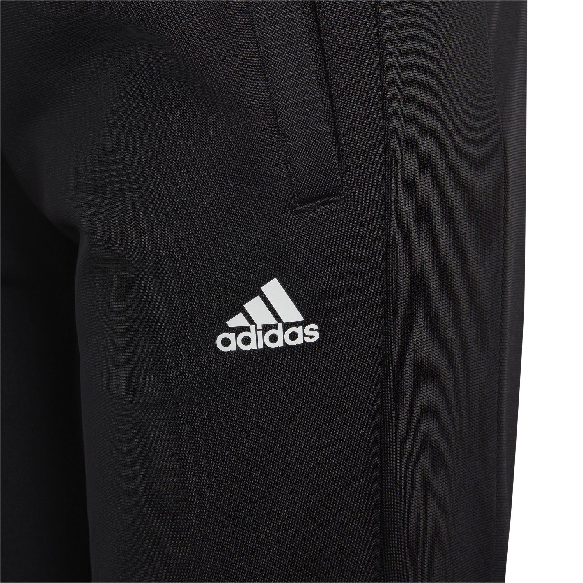 Blijf comfortabel, waar de dag je ook brengt. Dit junior adidas trainingspak is gemaakt van luchtig en zacht tricot om je behaaglijk te houden op school, in huis, of uit met vrienden. Door de elastische tailleband met trekkoord blijft-ie goed zitten.
