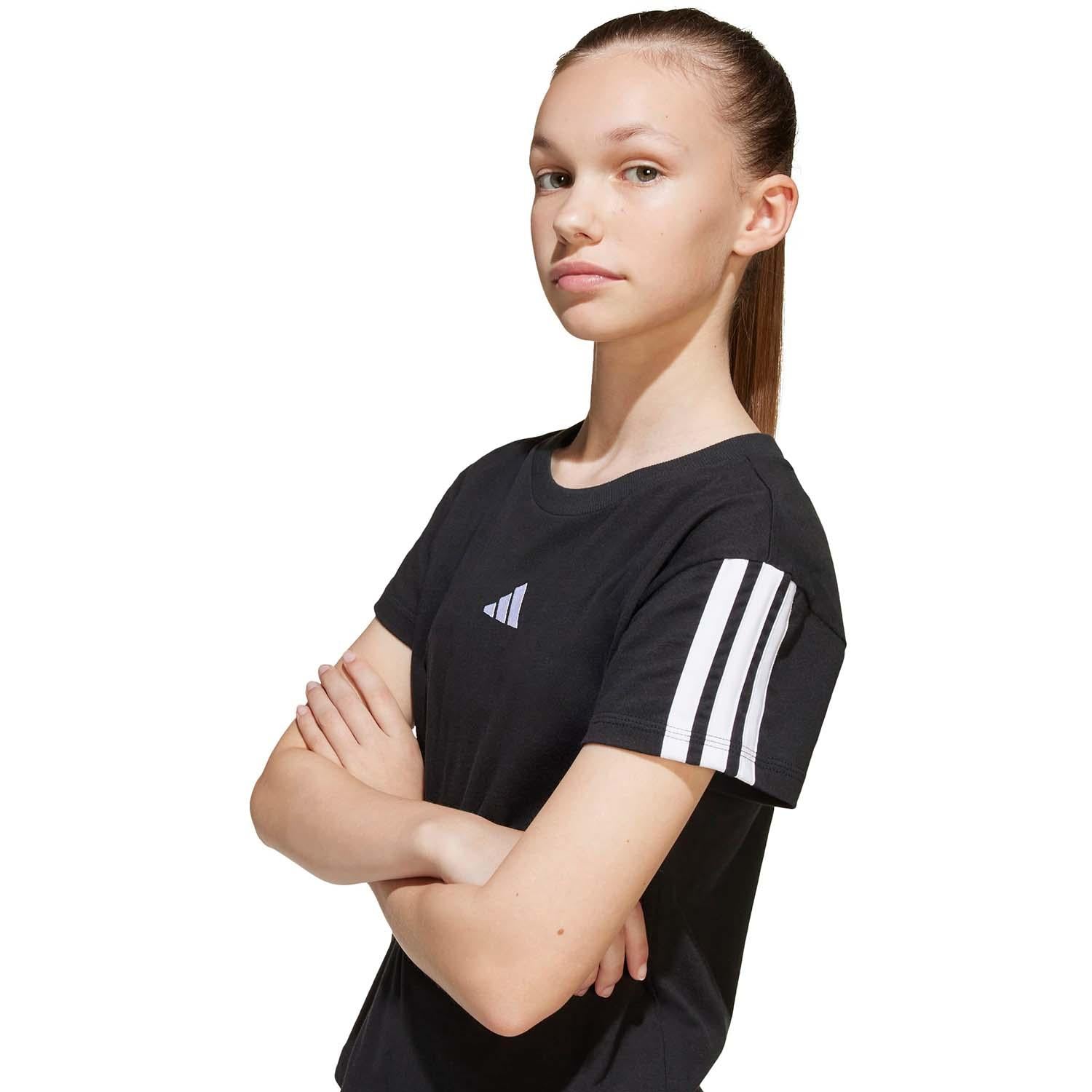 Dit junior adidas T-shirt transformeert eenvoudig van casual naar netjes met slechts een paar accessoires. Maar laat de veelzijdigheid het pure comfort van de katoenen enkele jersey niet overschaduwen. Het is een basic waar je op kunt rekenen.