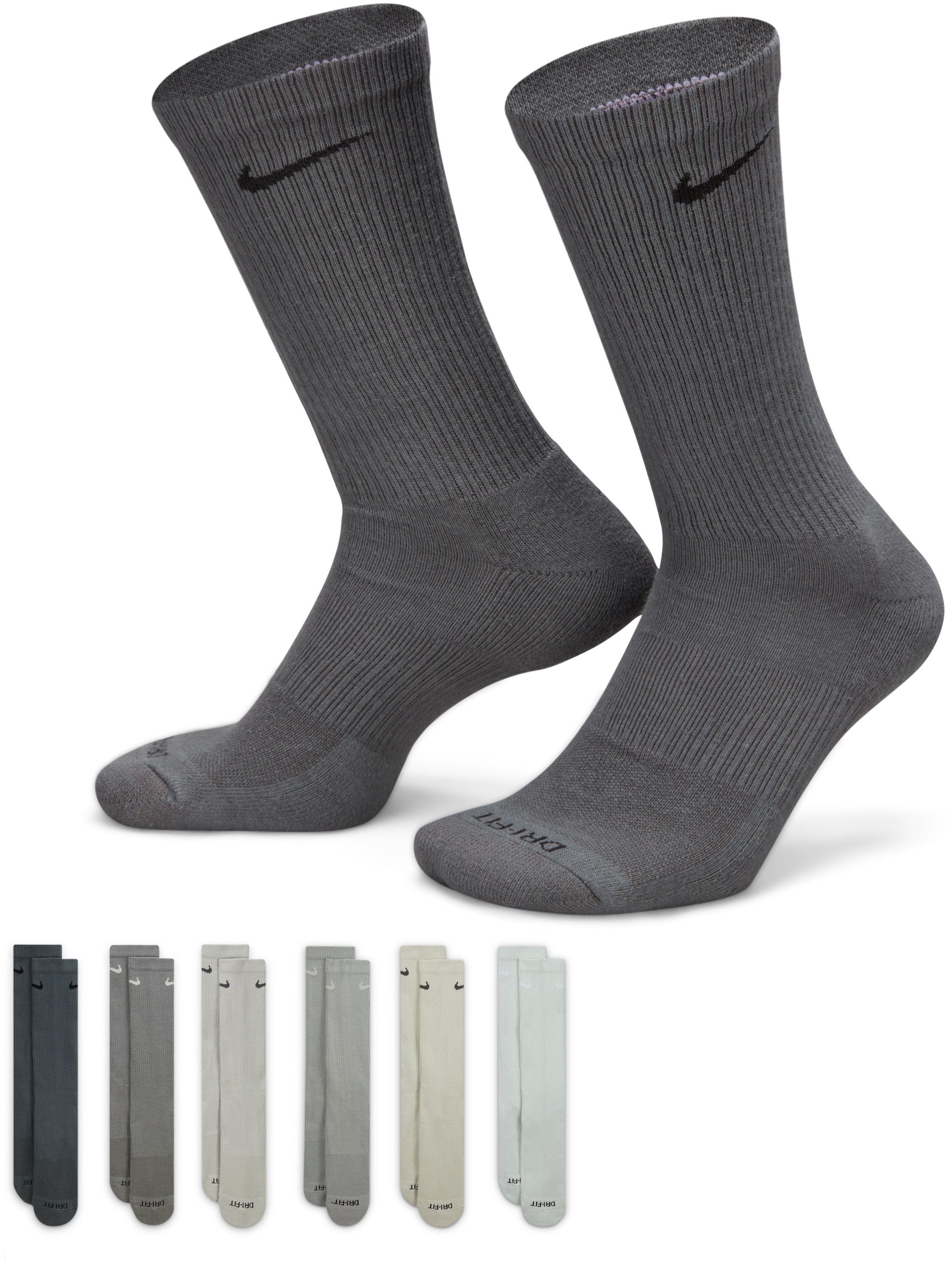 COMFORT EN ONDERSTEUNING. De Nike Everyday Plus Cushioned sokken zorgen voor comfort tijdens je work-out dankzij extra demping onder de hak en voorvoet en een voetholteband die goed aansluit en ondersteunt. Zweetafvoering en ventilatie aan de bovenkant houden je voeten droog en fris zodat je door kunt trainen.