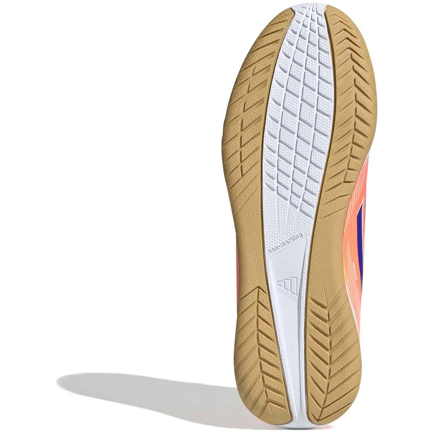 Vind jouw snelheid om jezelf te kunnen zijn op zaalvloeren. Voel de rush in adidas F50 voetbalschoenen gemaakt voor snelheid. Deze junior Club voetbalschoenen bieden je comfort tijdens je bewegingen met een lichtgewicht synthetisch bovenwerk en een geperforeerde tong. Onderop vind je een gripvaste rubberen loopzool die snel spel op vlakke zaalvloeren ondersteunt.