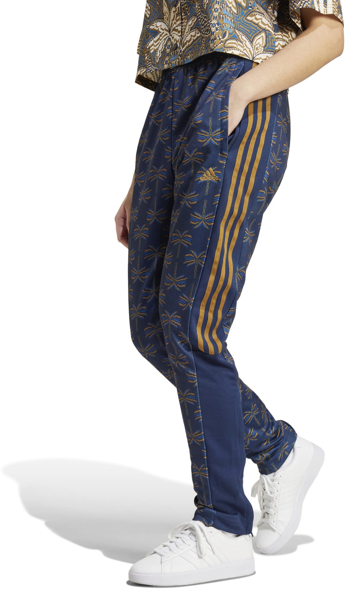 Van yoga bij zonsopgang tot wandelingen in de avondschemering: de adidas x FARM Rio Tiro trainingsbroek beweegt met je mee. Vind je flow in deze broek met tropische invloeden, die schittert met de typische kleuren en designs van het Braziliaanse label FARM Rio. Het veelzijdige model staat je bij, van workout tot hangout en elke oase daartussenin.