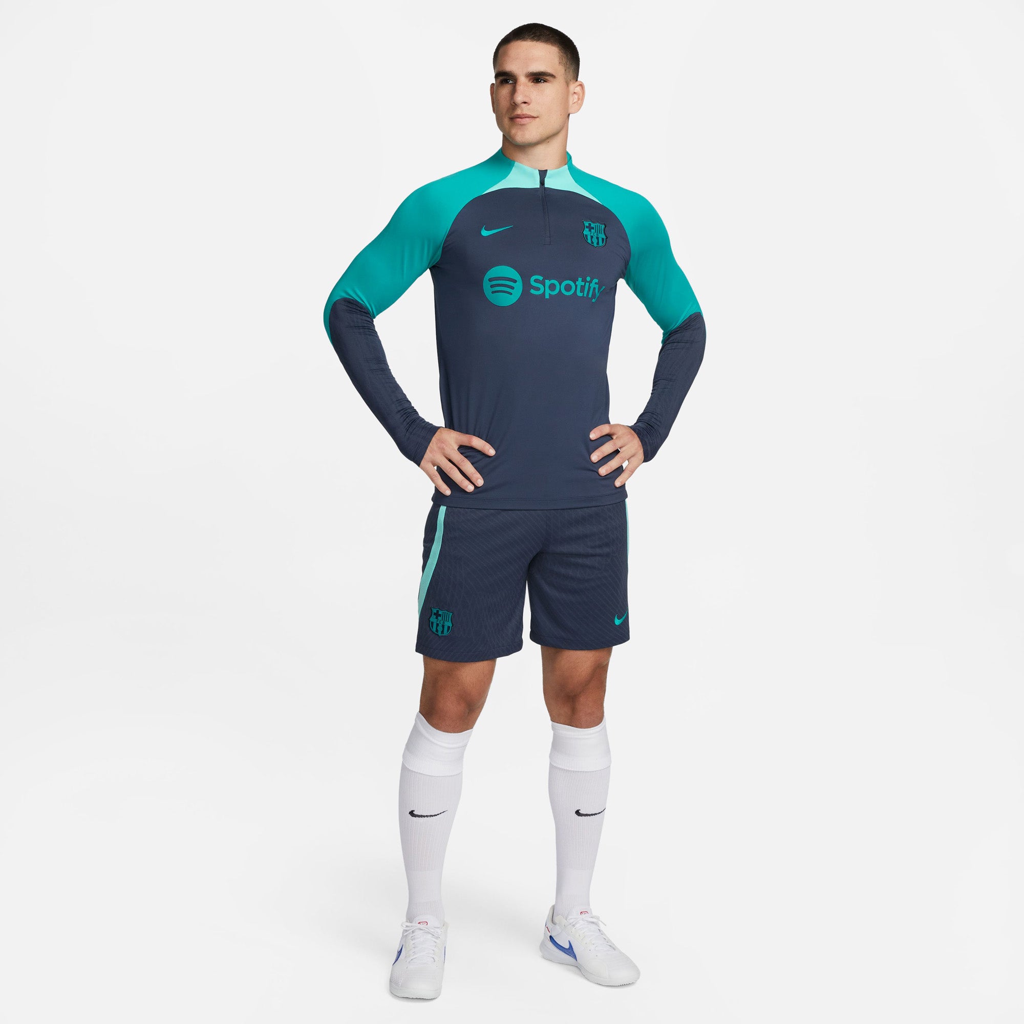 FC Barcelona Strike Nike Dri-FIT knit voetbaltrainingstop voor heren De aansluitende, gestroomlijnde pasvorm heeft speciale designdetails voor de aankomende sterspelers van het voetbal, zodat niets tussen jou en de bal komt. Het zweetafvoerende materiaal houdt je fris en zelfverzekerd terwijl je je skills verbetert. Nike Dri-FIT technologie voert zweet weg van je huid voor snellere verdamping, zodat je droog en comfortabel blijft. De duimgaten bieden extra bedekking en houden de mouwen op hun plaats wanneer je beweegt. De langere zoom aan de achterkant zorgt voor bedekking.