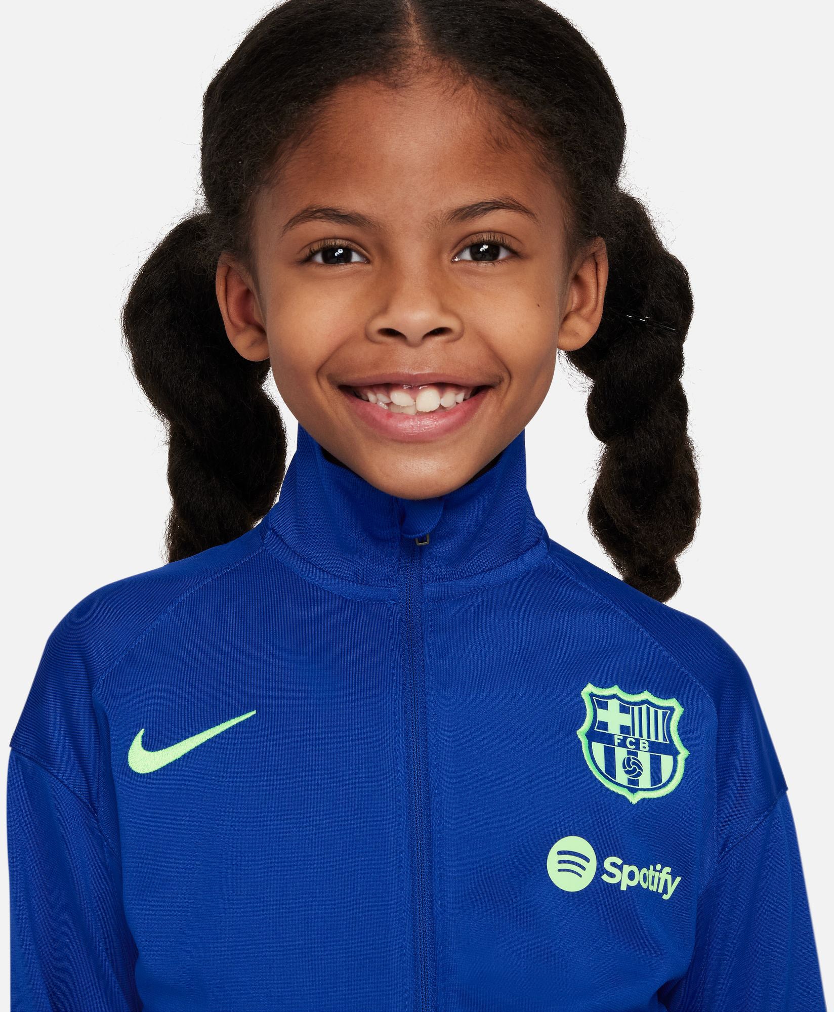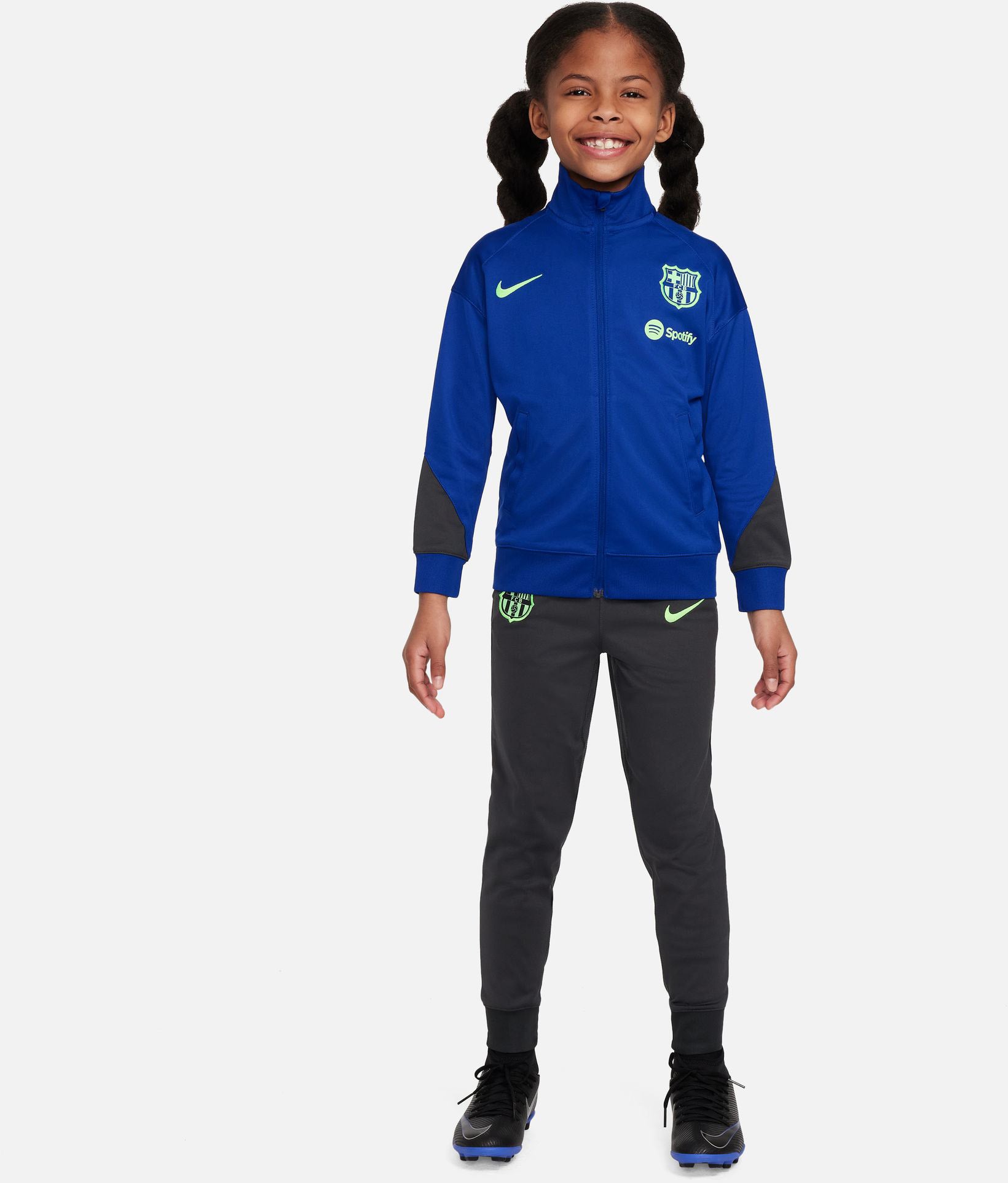 FC Barcelona Strike Derde Nike Dri-FIT knit voetbaltrainingspak voor kleuters De kampioenen van de toekomst hebben een passend tenue nodig. Dit FC Barcelona Strike trainingspak is gemaakt van zweetafvoerend materiaal en bestaat uit een jack met rits en een verstelbare broek voor optimaal comfort. Nike Dri-FIT technologie houdt kleintjes droog en comfortabel. Knit materiaal voelt zacht en enigszins elastisch aan.