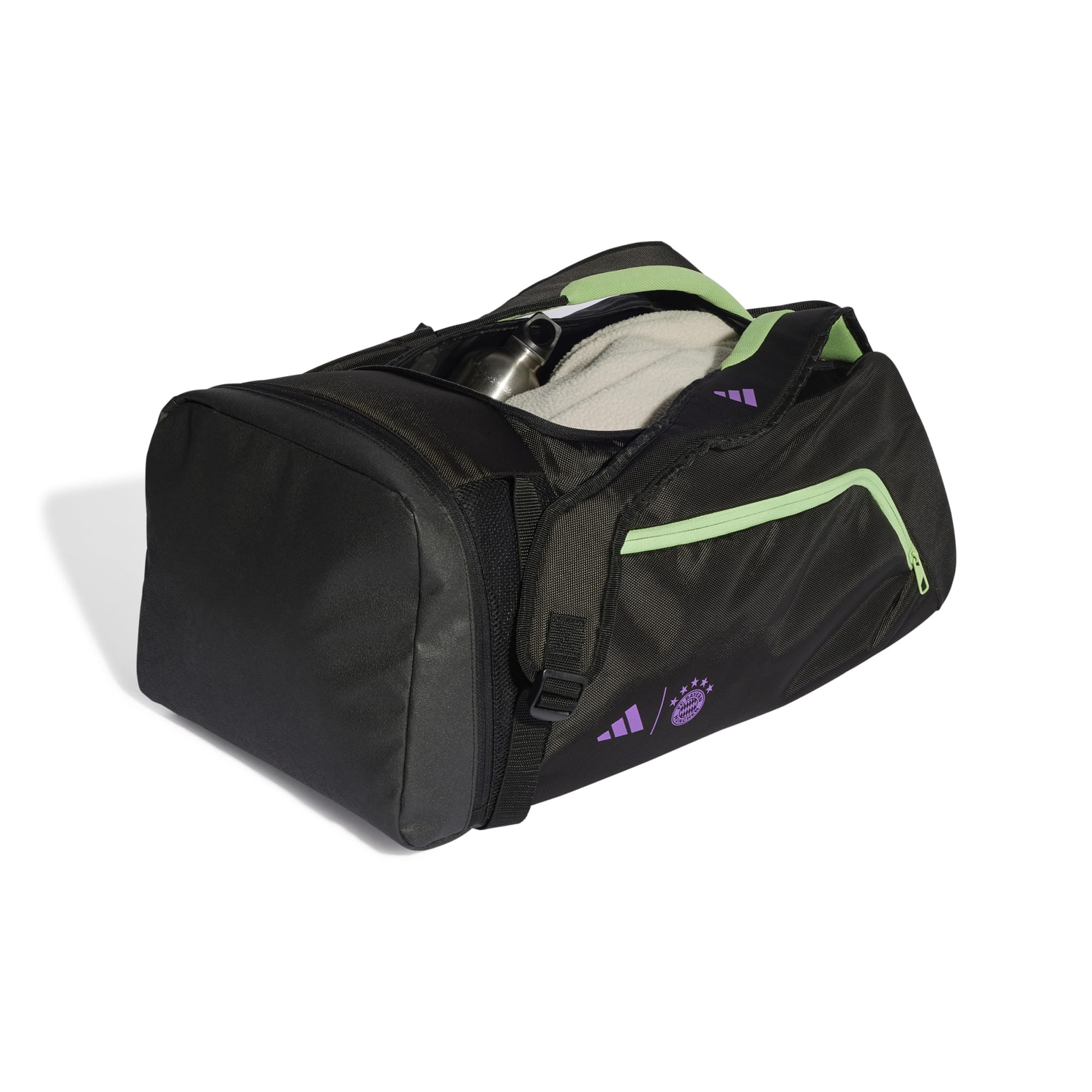 Waar je ook naartoe gaat, neemt wat FC Bayern München trots met je mee. Deze adidas duffeltas heeft een groot hoofdvak voor al je spullen. Er is zelfs een geventileerd vak om je schoenen in te laten luchten. Een zeefdruk van het clubembleem aan de zijkant laat zien dat je verfijnd voetbal waardeert.