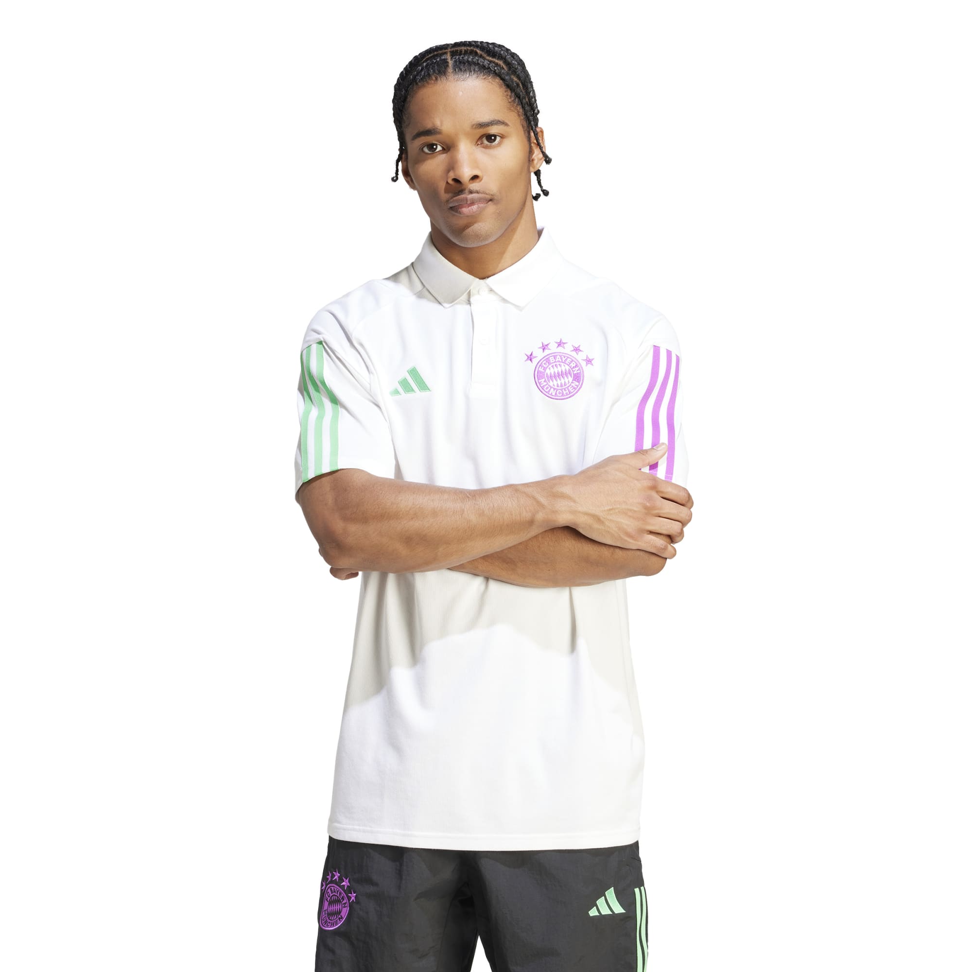 Deze adidas voetbalpolo, geïnspireerd op het uittenue van FC Bayern München, schittert met de mintgroene en paarse accenten die het elftal draagt tijdens uitwedstrijden. De zachte stof houdt je comfortabel, of je nu langs de zijlijn staat of met het team onderweg bent. Het FC Bayern München embleem laat iedereen weten dat jij de Duitse krachtpatser vertegenwoordigt.