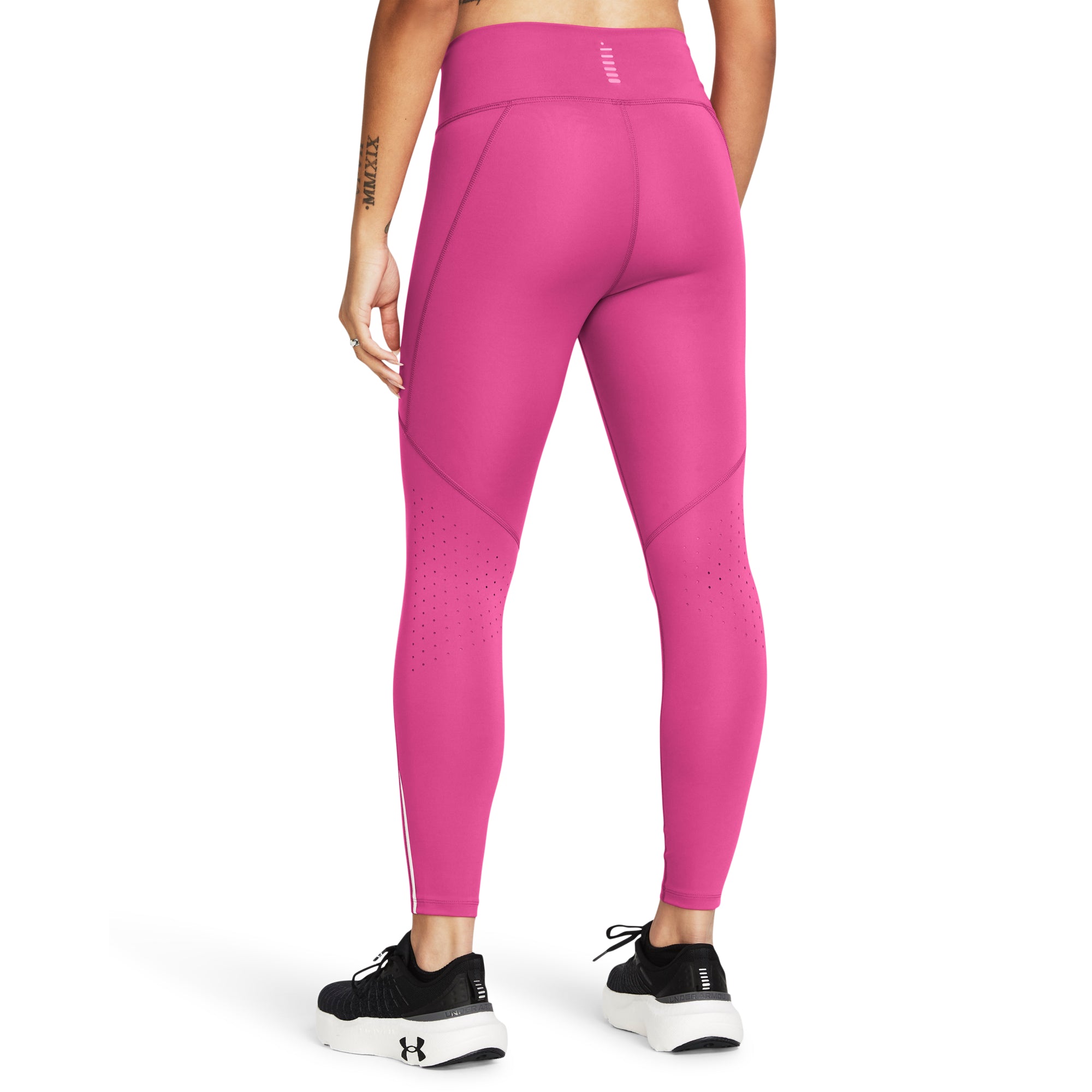 De superlichte, sneldrogende HeatGear®-stof biedt optimale bescherming. Het materiaal voert zweet af en droogt snel. Daarnaast rekt het materiaal in vier richtingen voor de optimale bewegingsvrijheid. De strategisch geplaatste laserperforaties zorgen voor extra ventilatie waar dat nodig is. De High-rise tailleband met trekkoord aan de binnenkant zorgt voor een perfecte pasvorm.